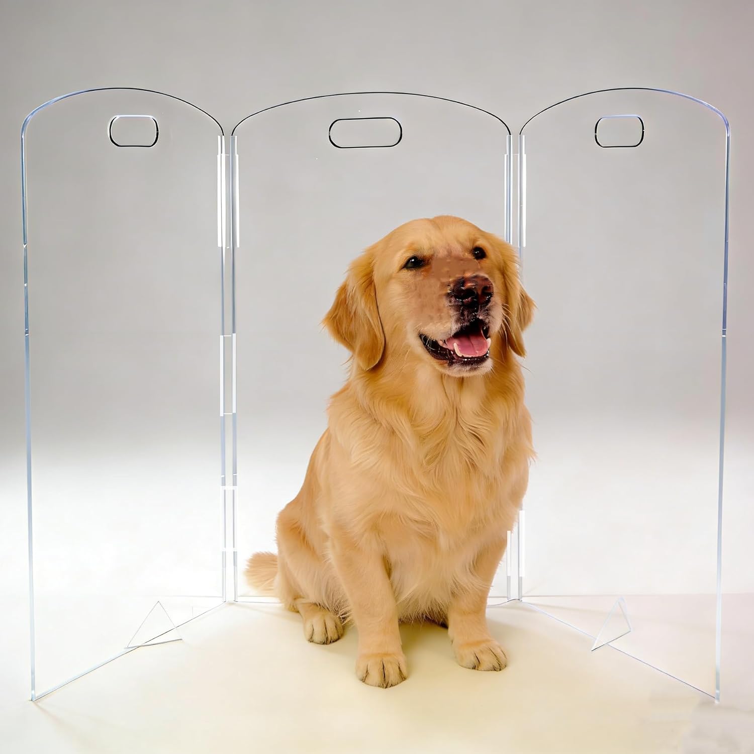 Keep your pets safe and your home stylish with the All Cheerful Clear Acrylic Freestanding Dog Gate! Designed for pet owners who value both functionality and aesthetics, this 2-panel pet gate is the perfect solution for creating a secure space for your furry friends without compromising on style. Crafted from premium transparent acrylic, this gate offers a crystal-clear view, allowing you to keep an eye on your pets while maintaining an open and airy feel in your home. Its freestanding design requires no drilling or installation, making it ideal for use in doorways, hallways, or stairs. Simply place it where you need it, and you're done! What sets this gate apart is its innovative support feet at the bottom, providing unmatched stability to prevent tipping, even with the most energetic pets. The foldable 2-panel design makes it easy to store or move around, saving space and offering ultimate convenience. Whether you're looking to block off a room, create a playpen, or keep your pets away from restricted areas, this versatile pet gate is suitable for both dogs and cats. It’s not just a barrier—it’s a thoughtful addition to your home that keeps your pets safe and your living space looking great. Key Features: Support Feet for Stability: Prevents tipping and ensures the gate stays firmly in place. Transparent Acrylic Panels: Provides a clear view and blends seamlessly with your decor. No Drilling Required: Easy to set up and move around without damaging walls or floors. Foldable Design: Saves space and makes storage a breeze. Versatile Use: Perfect for doorways, stairs, or creating a pet playpen. Upgrade your pet care routine with the All Cheerful Clear Acrylic Freestanding Dog Gate—where safety, style, and convenience meet!