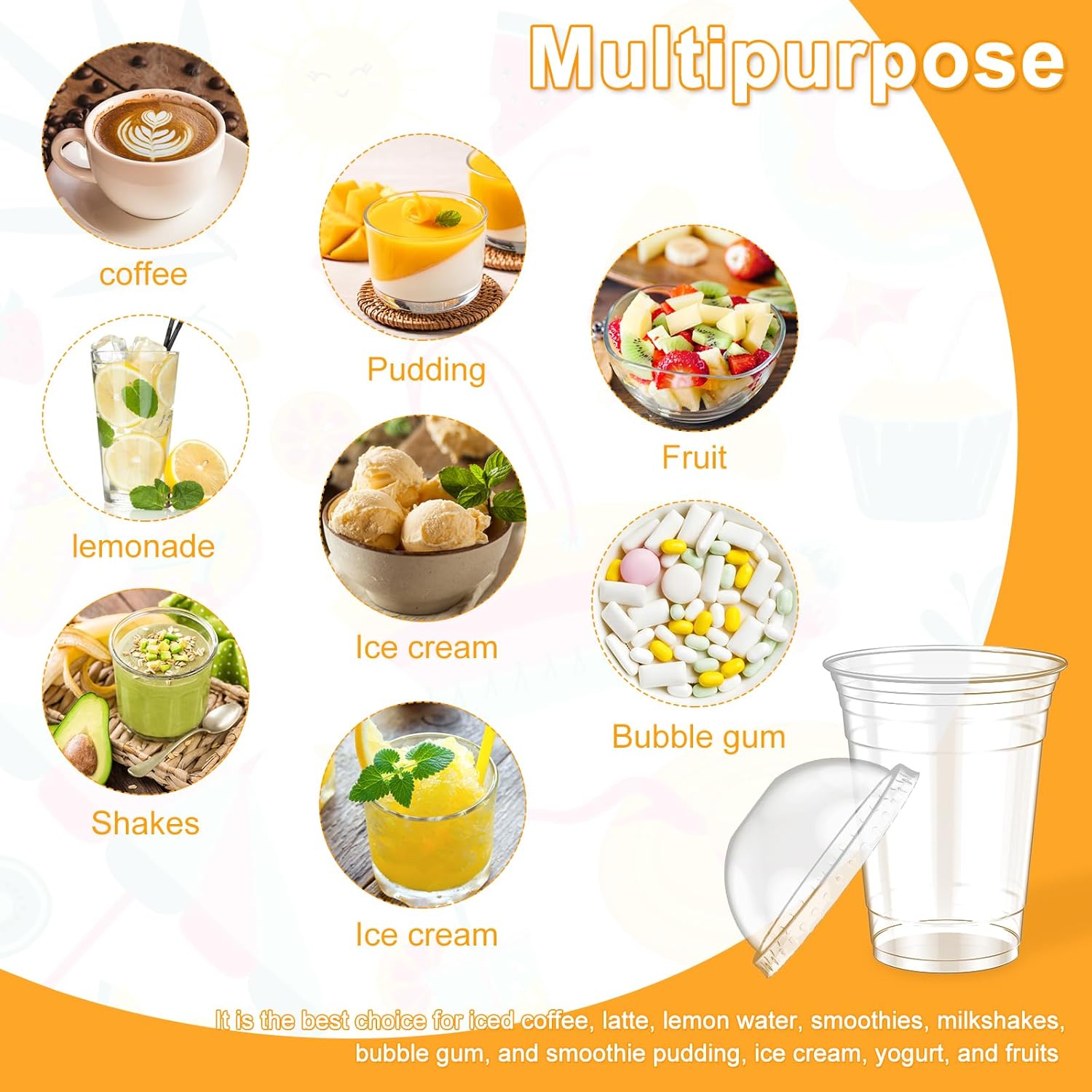 Parts List: 100 x Plastic Cups with Lids Product Specification: Description:You can easily hold these iced coffee cups in your hand or place them on a cup holder in your car. Ideal for daily family use or to serve drinks to guests on the go. The high lid design makes the lid fit tightly to the 17-ounce plastic cup, preventing leaks or dripping. These plastic cups with LIDS are crystal clear in appearance. They are all made of upgraded PET material, which is smooth and durable. Its ultra-transparent exterior perfectly presents the delicious appearance of the drink. Key Feature:Leak-proof Cup with Lid: The high lid design makes the lid fit tightly into the 17-ounce plastic cup to leakage or dripping and provide a comfortable drinking experience. It's ideal for daily family use or to serve drinks to guests on the go.Excellent Quality: All of them are made of upgraded PET material, smooth and durable. Its transparent appearance is for the delicious drink. Specification:Product Name: Plastic Cups with Lids:petSize: Cup: 12 x 6.1 x 9.8 cm Lid: Diameter: 9.8 cm Note:1. There may be slight color differences between the product picture and the actual item. We will do our best to display the color as accurately as possible.2. Please allow slight dimensional discrepancies due to manual measurement.