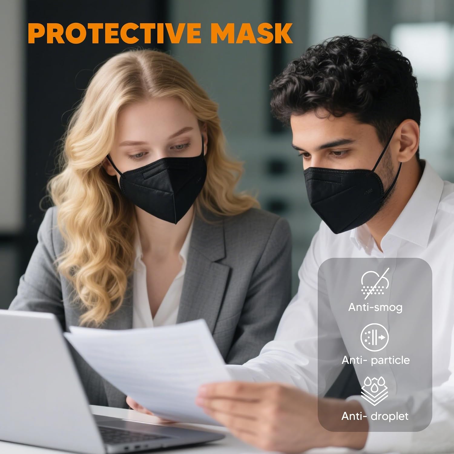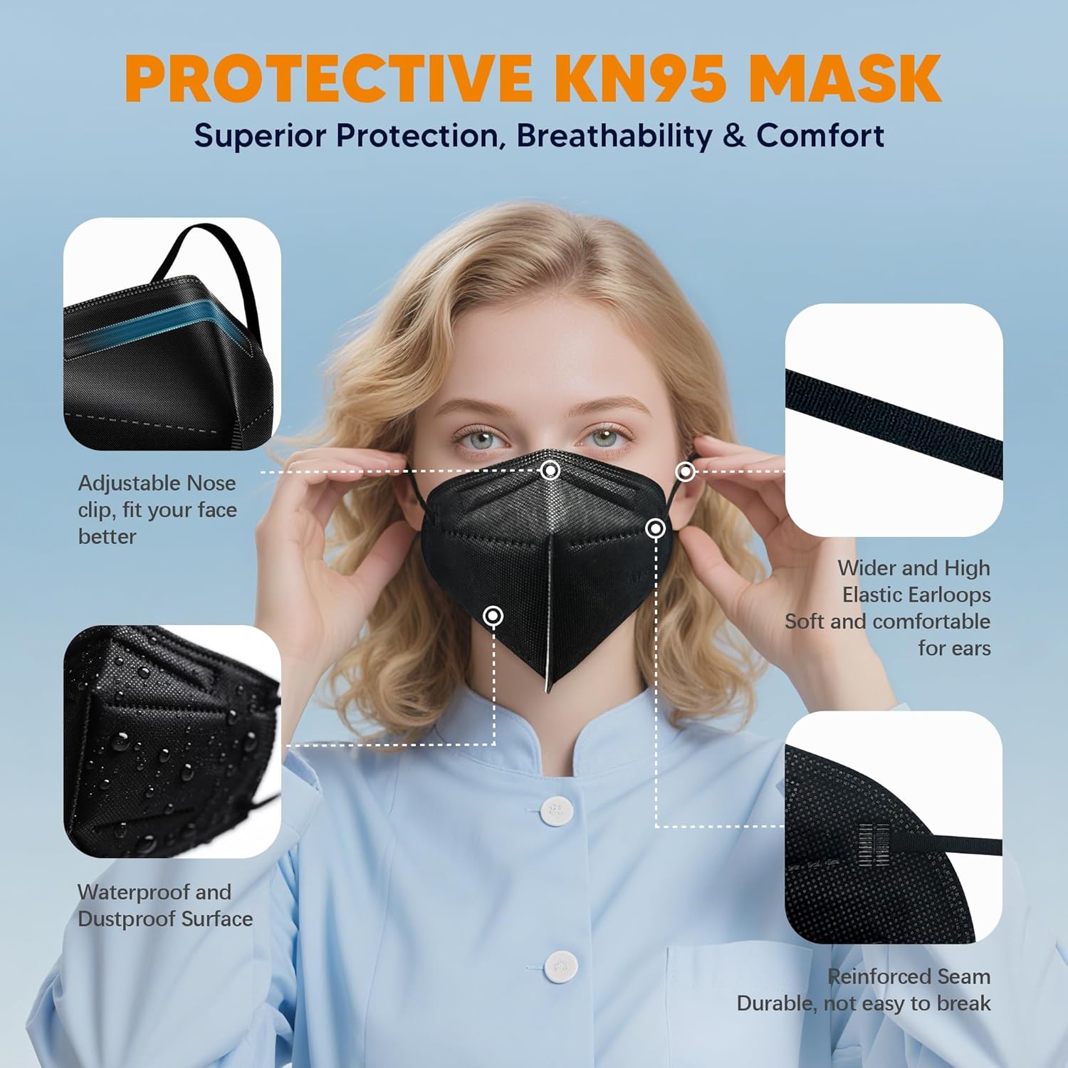 Stay protected with SATTRON KN95 face masks, designed for reliable daily use. This value pack of 50 black masks features a thoughtfully engineered 5-layer cup design that helps create a secure seal while remaining breathable during wear. The contoured shape provides ample space between the mask and your mouth, making it comfortable for extended periods. These disposable masks are individually wrapped to maintain cleanliness before use. The elastic ear loops and adjustable nose bridge allow for a customized fit across different face shapes and sizes. Perfect for various settings where respiratory protection is needed, these masks offer both practicality and comfort. The sleek black color maintains a professional appearance while serving its protective purpose. The cup-style design helps maintain the mask's structure, preventing it from collapsing during breathing.