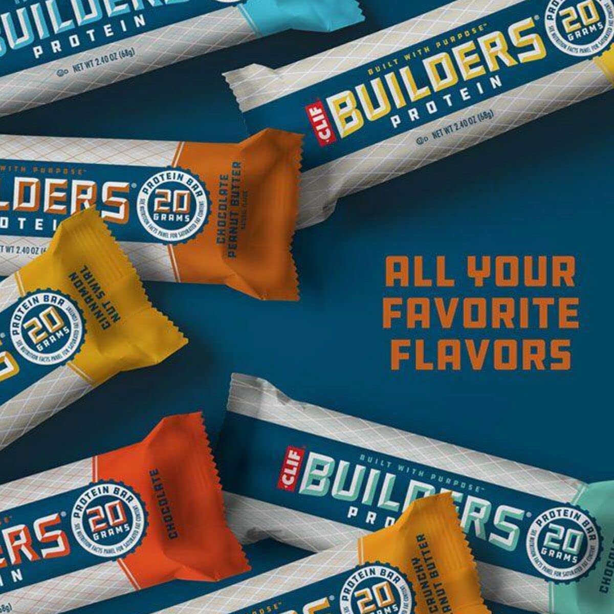 dome feeling sluggish? Grab a Clif Bar Builders Protein Bar out of your 12-pack, and pep up. Each of these bars contain a whopping 20 grams of protein, along with vitamins and minerals, to give you a boost when start to zone out rather than be in the zone. Clif Bar doesn't use trans fats, and this low glycemic bar won't cause a sugar high followed by the crash and burn.
