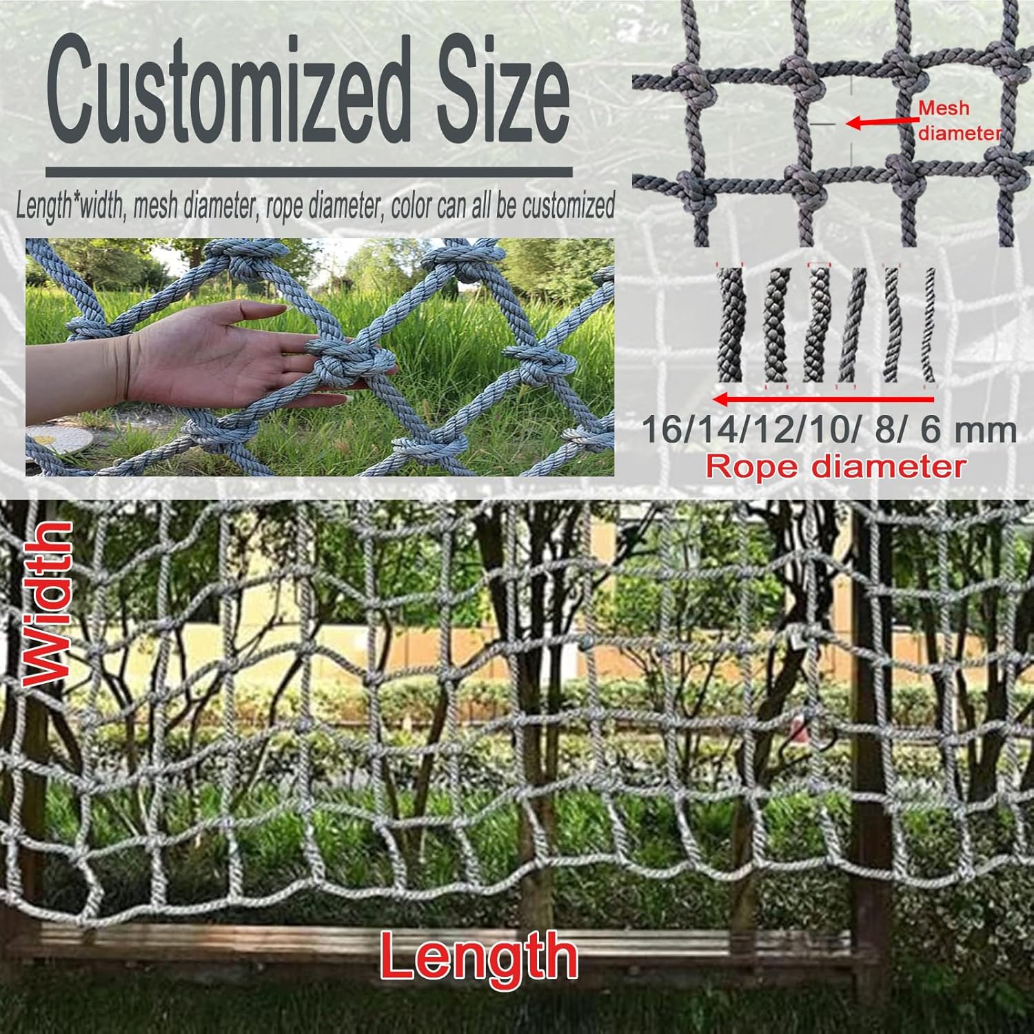 Discover the versatility of our hand-woven protective nets, designed to meet your various needs. Whether you're looking for a climbing net for outdoor adventures, a protective barrier for children, or stylish décor for your garden, our customizable options in size, color, and style ensure you find the perfect fit. If you don't see your desired color or size listed, feel free to explore our store for a wider selection.Product Name: Climbing NetRope Thickness: 12 mmGrid Diameter: 20 cmFunctional Benefits: This climbing net serves multiple purposes, including climbing support, protection, decorative use, storage solutions, isolation, and cargo covering. Its robust design ensures safety while adding an aesthetic touch to your space.Usage Scenarios: Ideal for outdoor climbing activities, play areas for kids, or as a stylish addition to your garden or patio. This net is perfect for both practical and decorative applications, making it a valuable addition to your home or outdoor setup.Important Tips:1. Please allow a 1-3 cm error margin due to manual measurement.2. The polyamide rope net will initially appear pink and gray. After 1-2 days of sun exposure, it will transform into a consistent gray that maintains its color over time.