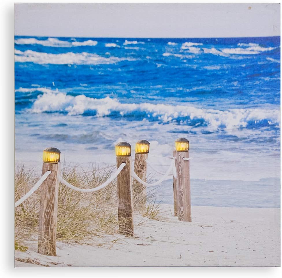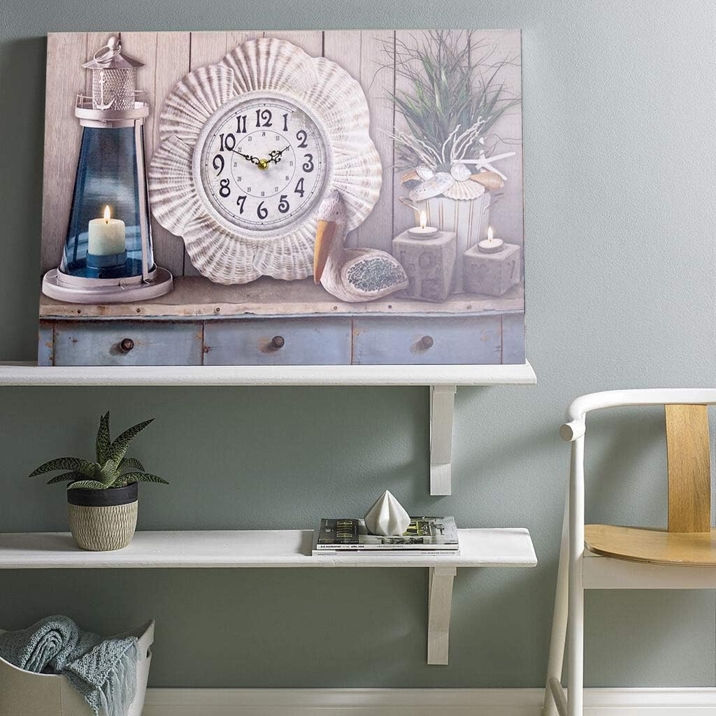 Are you searching for something functional but that will also compliment all types of decor? Looking for the perfect combination of class, style and use? STOP SEARCHING because we have the right canvas wall art right here for you. Premium Quality – Bring the beach waves in your room with this amazing canvas painting with long lasting durability. Printed with a wonderful fabric texture, lightweight and portable. Light Up– This canvas actually has small led lights on it to really add that extra detail to the artwork. You just need 3 double AA batteries(Not Included) There is a light switch on the side of the canvas to turn it on and off whenever you like! Ideal Gift -Give this beautiful canvas as a gift to your grandma, mom, sister, friend or anyone who loves the sound of the sea. It will bring a bright spot of color to any room in the house. For Any Indoor Space - What a cool piece of art to hang in your kitchen. Suitable for living room, bedroom, hallway or any other space. Specifications: Theme: Beach Themed with A Working Clock And LED Lights Shape: Rectangular Piece: 1 Piece Color: Multi color Material: Canvas Size: 24” x 16” Battery: 3AA batteries PACKAGE INCLUDES: 1 x Canvas Notes: Batteries are not included Keep in mind that the colors you see on your computer or mobile device may not be the exact color of the product. Thanks! Our goal is to bring 100% satisfaction to our customers and that is why we have designed this amazing and beautiful beach themed wall clock painting. Make the right choice and ORDER NOW. We guarantee you won’t regret it!