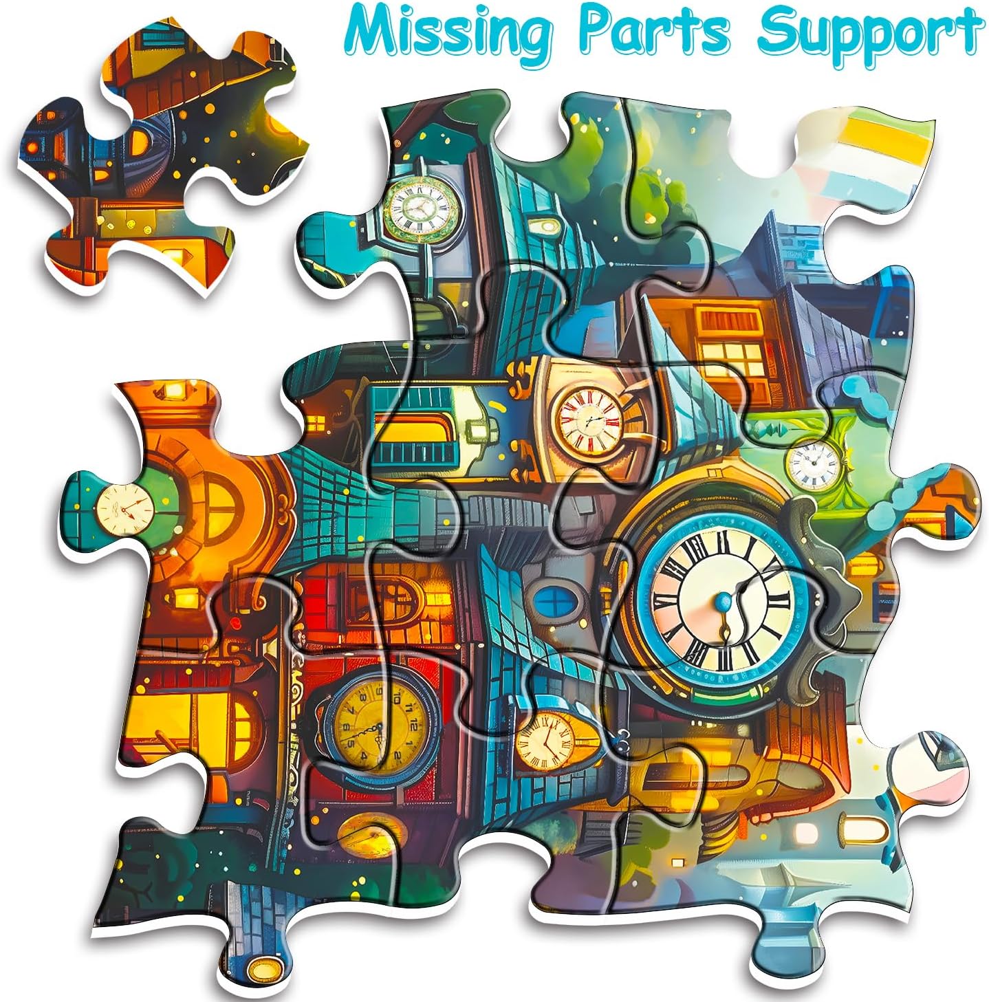 Clock House Puzzles for Adults 1000 Pieces, Impossible Magic Forest Jigsaw Puzzle,Difficult Family Cool Rainbow Clock Tower Puzzles for Adults