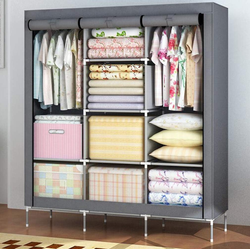 Meet all your storage needs with this portable closet.This closet organizer will provide you with a clean and comfortable life space.When not in use, this closet organizer can be taken apart in seconds. What a wonderful piece!Specifications:- Fabric Material: Non-woven Fabrics- Connectors Material: Plastic Connectors- Pipe Material: Steel Tube- Assembly Required: YesNotes:- Please make sure all poles reach the bottoms of plastic connector holes.- Please be careful during assembly and dis-assembly.