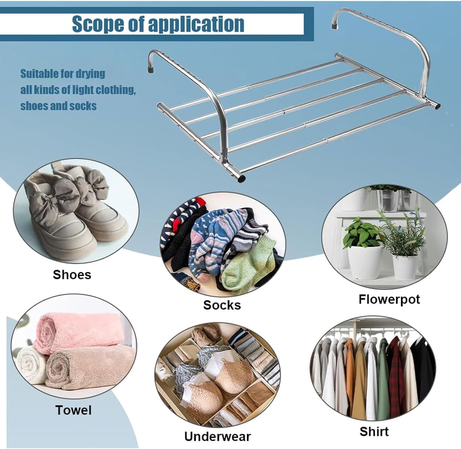 Discover the Multifunctional Stainless Steel Laundry Drying Rack, an ideal solution for efficient drying in compact spaces. This versatile drying rack is designed to fit effortlessly on balcony railings, windowsills, and other tight spots, making it perfect for small living environments. Featuring a telescopic length that adjusts from 50-86cm (19.68-33.85in) to 86-158cm (33.85-62.20in), it meets a variety of drying needs. Crafted from robust 304 stainless steel, it is highly durable and resistant to corrosion. The foldable design allows for convenient storage when not in use, while the 10-speed spring buckle offers adjustable length for various placements, including small apartments, dormitories, kitchens, and outdoor spaces. This pack includes one folding drying rack. Please note that manual measurements may result in a 3-5mm error. For any inquiries, feel free to contact us.