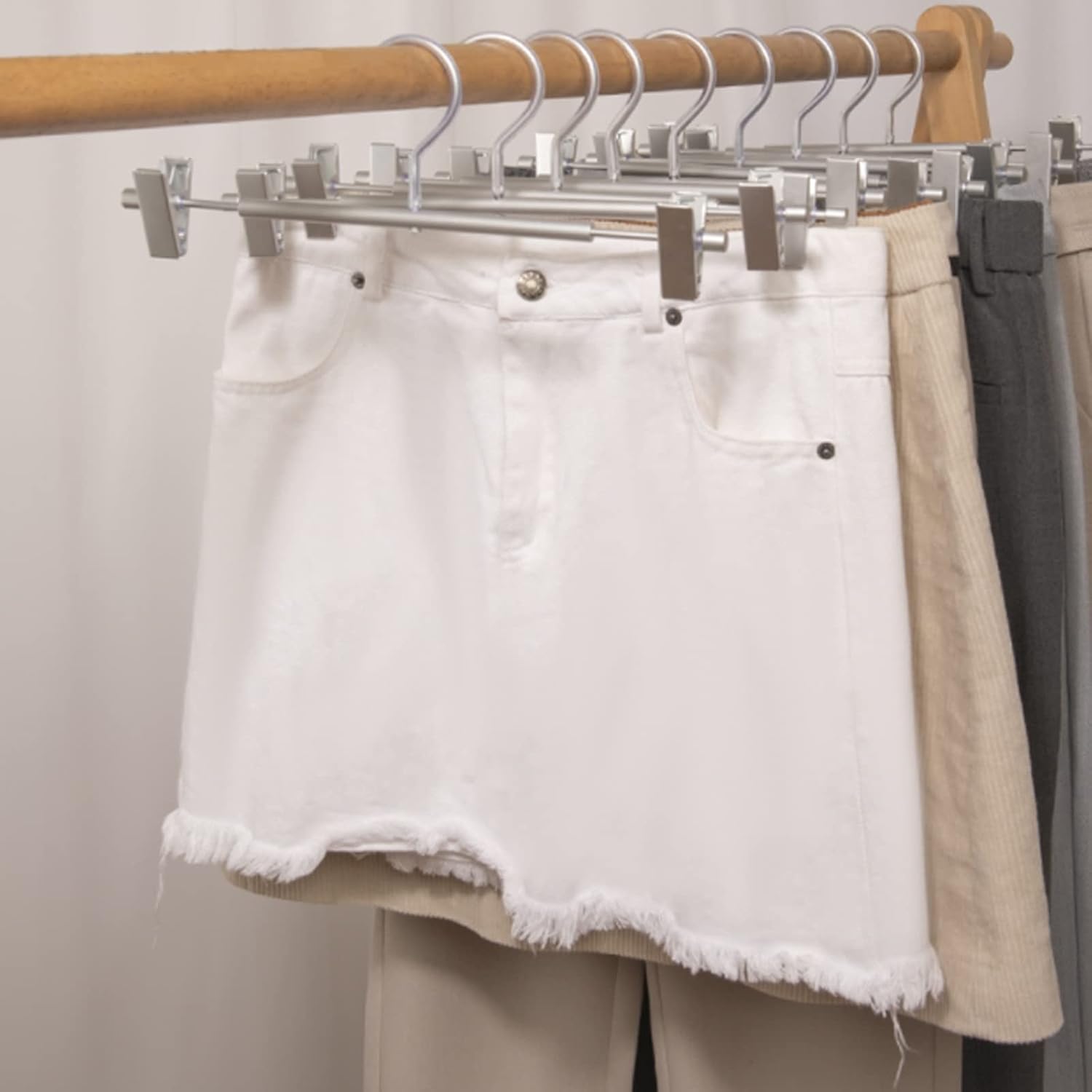 Heavy duty for suit, coat, sweater, jacket, pants and more organization. Keep your clothes neat and organized.Product name: hangerProduct size: 12.2X4.5inMaterial: aluminumNumber of pieces: hanger*10prompt:1.These space saving hangers are ideal for hanging skirts, pants, jeans, work trousers, maxis, leggings and shorts. Hang boots, socks, towels and pillow cases, on the multifunctional hangers to declutter closet floors and dresser drawers.2.These will conform to you. Clips are easily adjustable, thereby neatly holding any type and size of clothing you own.3. Each hanger can be hanged for trousers at same time. Save the space in your closet that offer you more space to storage some other things.4.we understand how difficult it can be to keep a tidy house. This is why we have developed products that aid in the decluttering and organization of every residence. Each item is meticulously crafted with the user and their living space in mind. The end product results in items that maximize space, simplify organization, and take the guesswork out of keeping a neat home.5. If you find any problems with our products, please feel free to contact us via email, we will solve this problem as soon as possible.6. The above data is for reference only, and the size is handmade. Actual measurement, the error is 1-3 cm, please allow it, thank you.