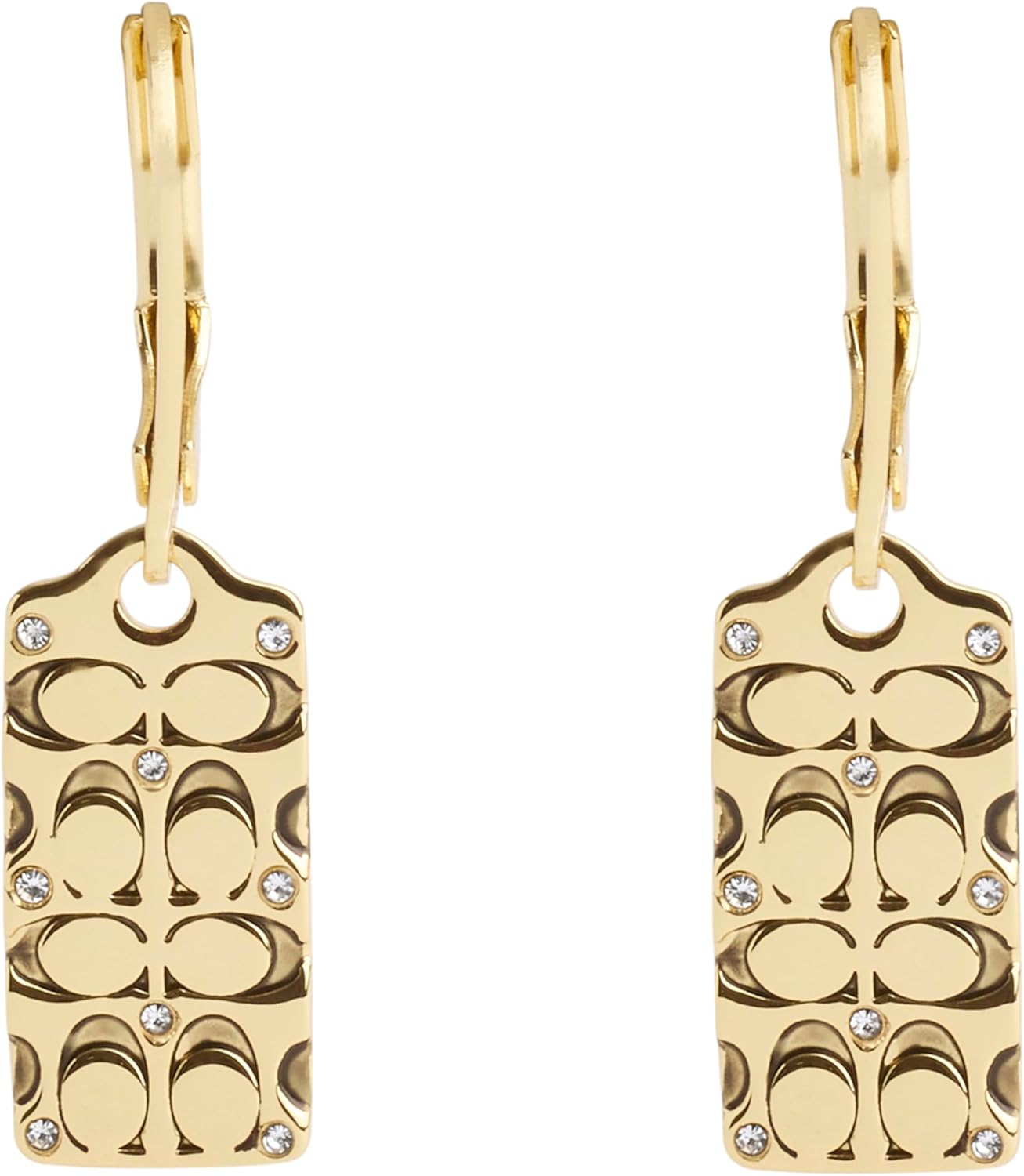 Elevate your wardrobe in the stylish COACH® Logo Quilt Leverback Earrings.Matching bracelet sold separately.Available in gold tone with crystals. Push and release backing.Imported.