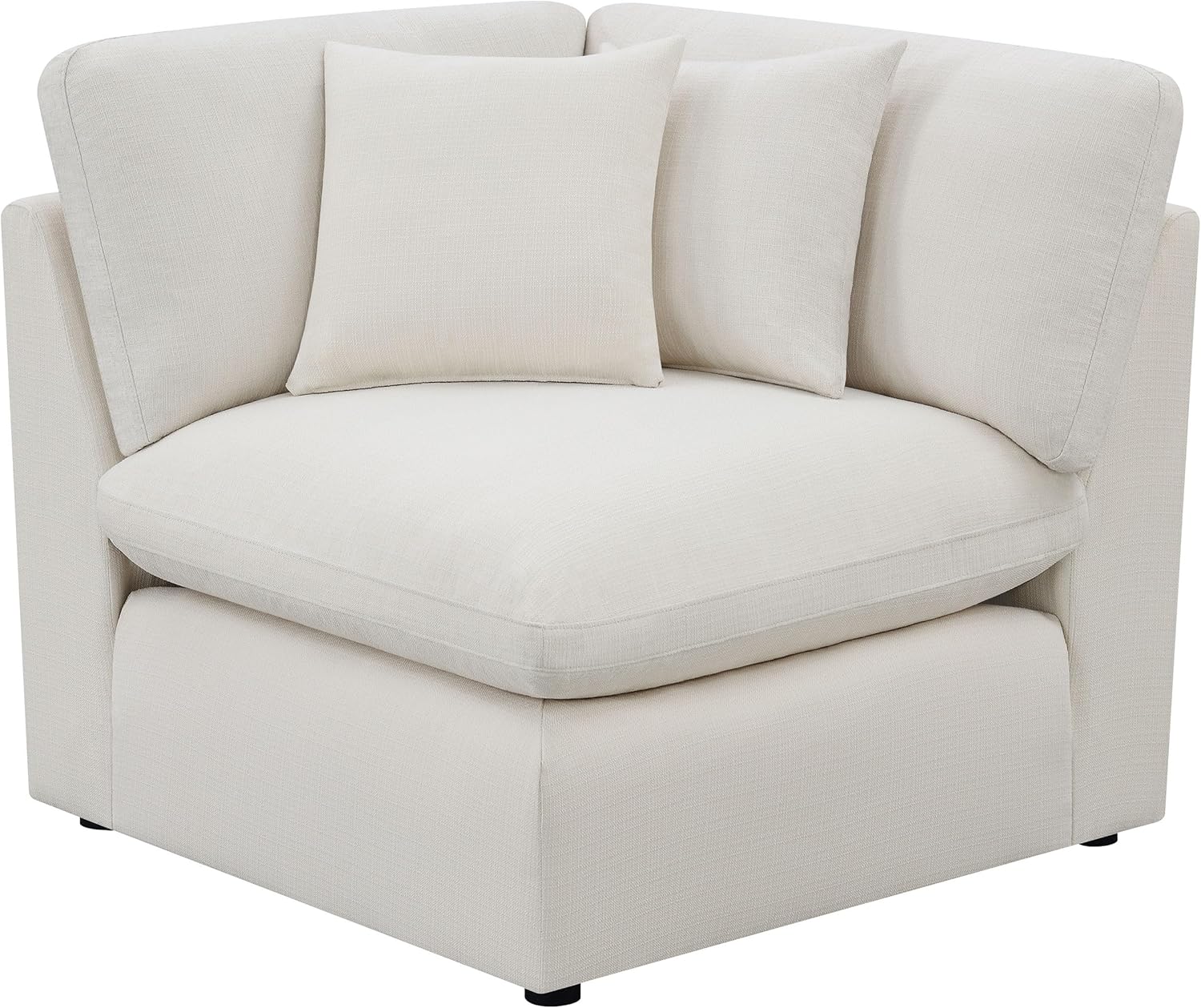 Create a cozy, design-forward atmosphere with a versatile layout that adapts to your space and lifestyle. Crafted with wood construction, a plush cushioned seat, and refined topstitched details, this piece offers long-lasting comfort and tailored support. Wrapped in soft ivory fabric and styled with sloped track armrests and accent pillows, it brings timeless appeal to your home decor. The L-shaped modular sectional sofa combines beauty and functionality in a perfect expression of transitional style. Dimensions: Armless Chair Dimensions: 38 inches wide x 40 inches deep x 34 inches highArmless Chair Seat Dimensions: 38 inches wide x 25.5 inches deep x 19 inches highCorner Dimensions: 40 inches wide x 40 inches deep x 34 inches highCorner Seat Dimensions: 25.5 inches deep x 19 inches highLAF Chair Dimensions: 42 inches wide x 40 inches deep x 34 inches highLAF Chair Seat Dimensions: 38 inches wide x 25.5 inches deep x 19 inches highRAF Chair Dimensions: 42 inches wide x 40 inches deep x 34 inches highRAF Chair Seat Dimensions: 38 inches wide x 25.5 inches deep x 19 inches high