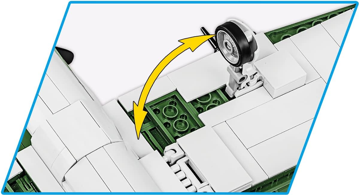 The P-47 Thunderbolt™ was a single-seat fighter and fighter-attack aircraft, the forerunner of modern multi-role fighters. The largest single-engine fighter of World War II, more than 15,000 were produced and it was the most numerous and one of the most successful US fighter aircraft. The P-47 appeared on the fronts in Europe, Africa, the Far East and the Pacific. Due to its size, the Thunderbolt was affectionately called "Jug". It was short for "Juggernaut," meaning big truck. The block P-47 was developed in a 1:32 scale, matching the rest of the collection, using 477 COBI construction blocks. The model contains high-quality prints that do not wear off during use. With their help, the historical "Little Chief" painting and other details of the aircraft were recreated. The model has many movable elements such as rotating wheels with rubber tires, movable propeller and ailerons. In the cabin you can place the pilot figure included in the set! This is a great model for all history and aviation enthusiasts and military collectors. And the set is topped off with a display stand and a brick with the name of the plane printed on it.