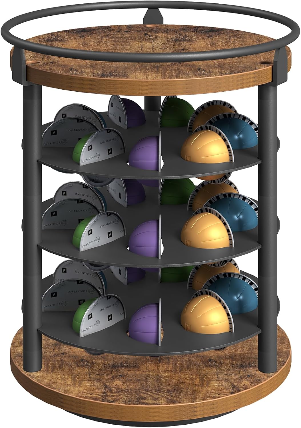 YATINEY Coffee Pod Holder Organizer, Holder for K Cup, Large Capacity Coffee Pod Basket, Versatile Coffee Capsule Storage Organizer, Coffee Pod Holder, Rotating Pod Organizer for Vertuo, Coffee Pod Organizer for Countertop, 27 Coffee Capsules, Storage Rack for Nespresso Vertuo Pods, KH09BB-KH03BR