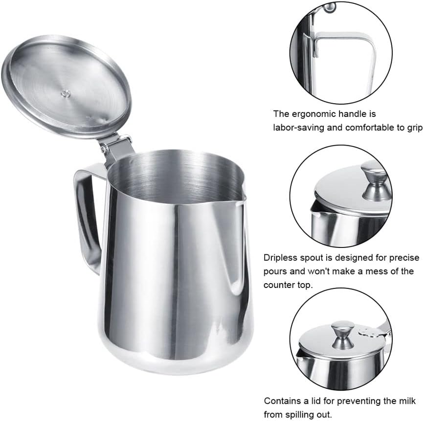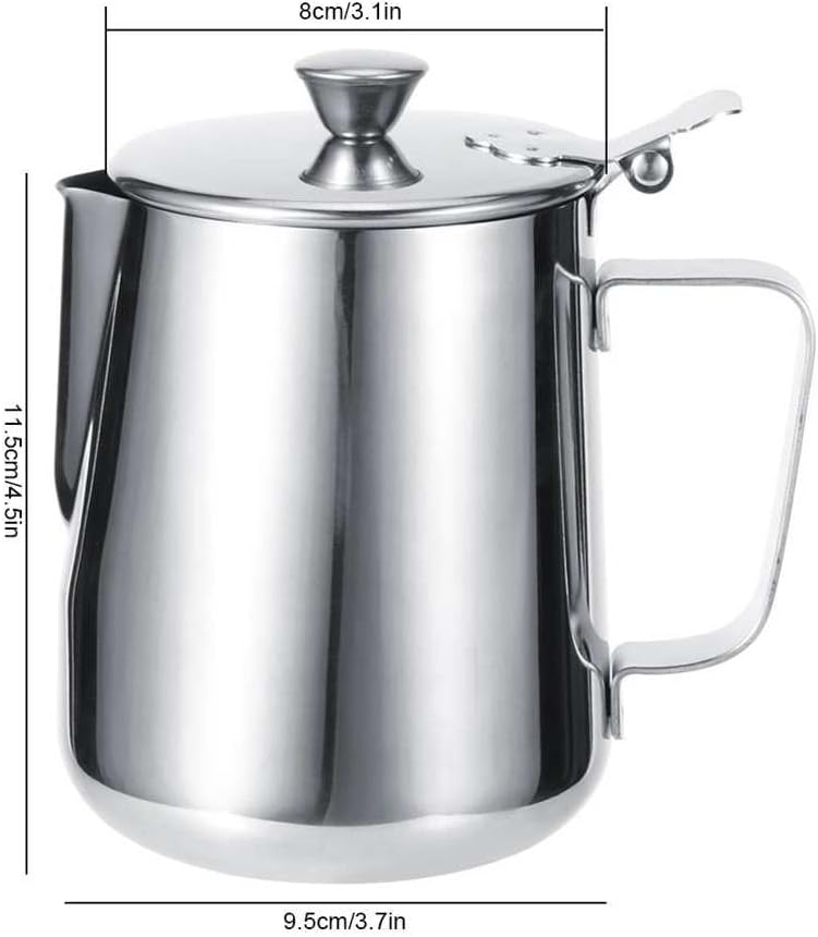 EDCWDTYYECSpecification: Item Type: Milk Frothing Cup Material: Stainless Steel Capacity: 600ml,1000ml Color: Silver600ml Size: Approx.8x11.5x9.5cm/3.1x4.5x3.7in 1000ml Size: Approx.9x13x11cm/3.5x5.1x4.3inWeight: Approx.303g~385g/10.7oz~13.6ozPackage List: 1 x Milk Frothing CupNote: 1. Please allow 1-2cm error due to manual measurement. Thanks for your understanding.2. Monitors are not calibrated same, item color displayed in photos may be showing slightly different from the real object. Please take the real one as standard.Scope of use: cafes, bars, restaurants, lounge bars.