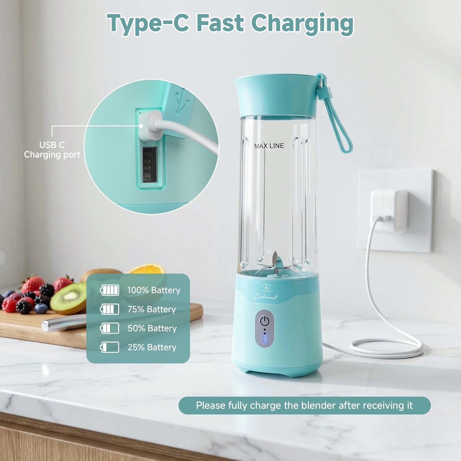 | Included Components | 1* Cup, Motor Base, 304 stainless steel 6-blades, Instruction Manual, Cleaning Brush, Small Bottom Lid, Portable lid with strap, USB-C Charging Cable |