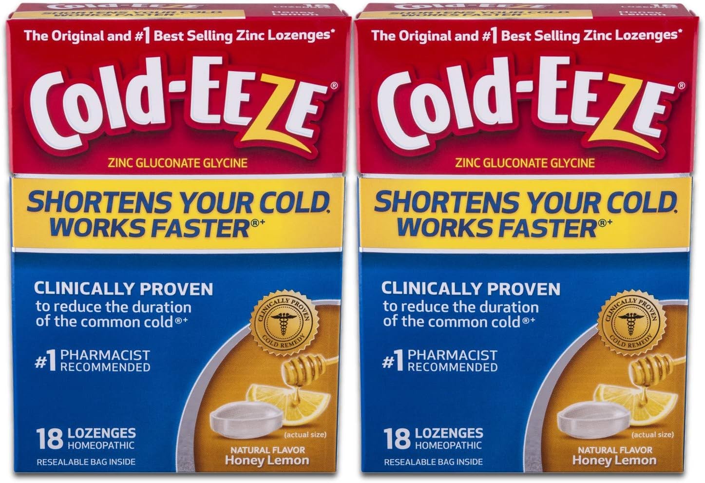 Cold-EEZE zinc lozenges can shorten your cold by 42% when taken at the first sign of symptoms and used as directed. † Cold-EEZE is the #1 Pharmacist Recommended zinc lozenge brand. ‡ Our homeopathic cold remedy is made with a distinct zinc gluconate formula, the active ingredient in Cold-EEZE. Cold-EEZE is also the best-selling zinc lozenge. § Cold-EEZE zinc gluconate lozenge cold remedy is free of artificial colors or preservatives. ‡ Based on the 2019 Pharmacy Times OTC Guide Active ingredient (per lozenge): Zinc Gluconate 2X HPUS (13.3 mg zinc) Inactive ingredients: Corn Syrup, Honey, glycine, natural flavors and sucrose. No artificial colors or preservatives. Adults and children 12 years and over: o Take Cold-EEZE at the first sign of cold symptoms o Completely dissolve a Cold-EEZE lozenge in mouth (do not chew) o Repeat every 2-4 hours as needed until all symptoms subside o Recommended daily dosage is 6 lozenges for adults and 4 lozenges for ages 12-17 Children under 12 years of age should consult a healthcare practitioner prior to use * Claims based on traditional homeopathic practice, not accepted medical evidence. Not FDA evaluated. † This product has not been evaluated by the FDA. ‡ Based on the 2019 Pharmacy Times OTC Guide. § Based on unit sales of cold-shortening homeopathic zinc lozenges. Ask a doctor before use if you are taking minocycline, doxycycline, tetracycline or are on Coumadin therapy, zinc treatment may inhibit the absorption of these medicines. Stop use and ask your healthcare practitioner if symptoms persist after 7 days.
