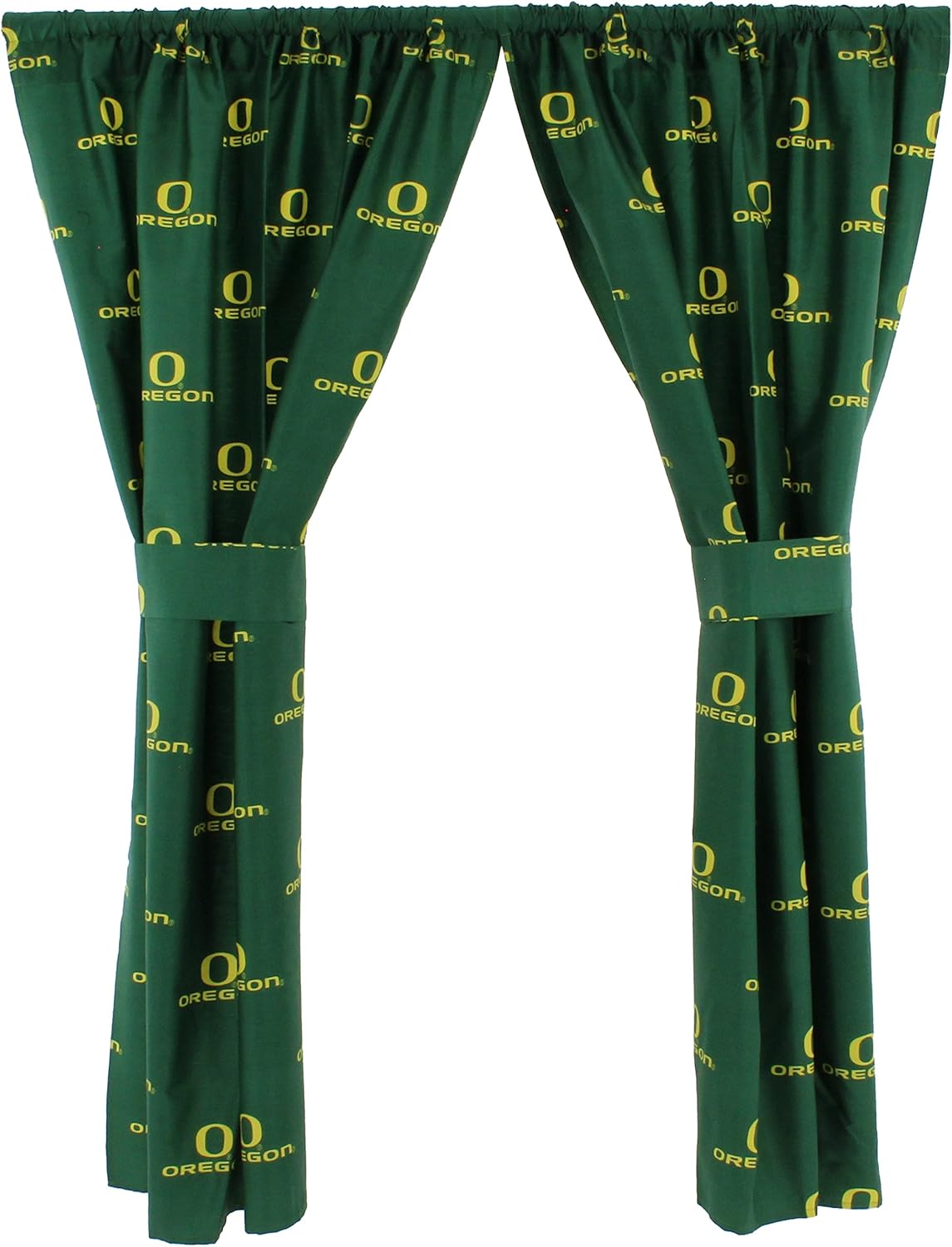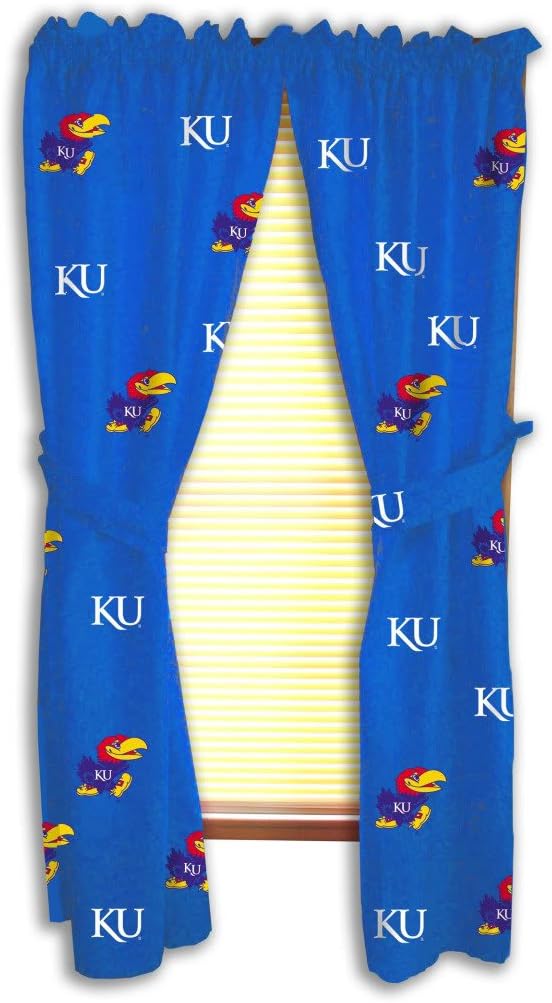 These 63 inch curtain panels are College Covers brand and licensed by Everything Comfy. This curtain panel set includes two 42 inch x 63 inch curtain panels with two matching tiebacks, all you need to fully decorate 1 window. Curtain panels have a 2 inch rod pocket and 2 inch header, complete with all over printing done in officially licensed team colors and logos. These 63 inch long curtain panels match perfectly to our curtain valance, sold separately. These work great in any man cave or fan cave. These curtains are machine washable in cold water and tumble dry on low heat.