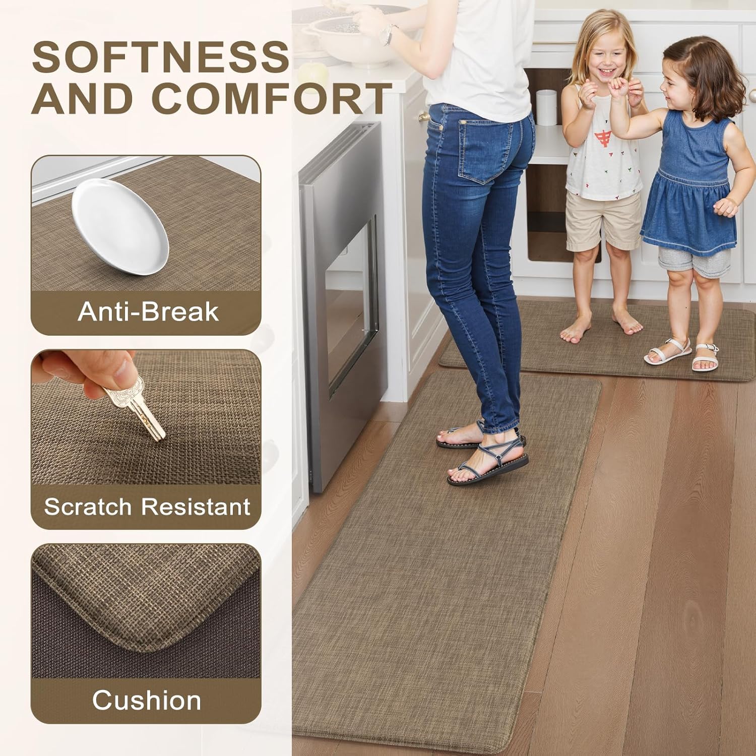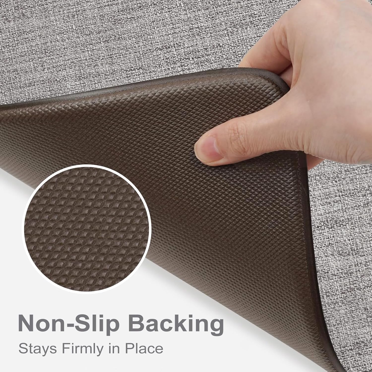 Colive kitchen rugs feature unique designs, bringing vintage colors to your kitchen, and more joy and comfort to your cooking time.Features:1. Give tired toes rest with kitchen mats for floor 2 piece, perfect for people with hip, knee, leg, and back pain, Collive kitchen mats of 2 sets will bring luscious texture, enduring material, and comfortable steps for your convenience. 2. The perfectly crafted PVC mat with non-slip backing stands up for daily use and easy care, put a bit of water on the mat and blot dry with a cloth, and a hand vacuum to clean up crumbs, they picked up very easily. 3. Anywhere one would be stuck standing on hard floors for a prolonged period of time, use kitchen mats for floor anti fatigue in any part of your home, whether the stove and the kitchen sink, bathroom counter, office, restaurant, doorway, or smaller/tighter areas. 4. Two sizes of mats that can accommodate the different area sizes. Care Instruction:-Wipe it off with a rag- Shake out dust or debris- Use broom and wipe dirt- Use vacuum cleanerNote:1. Water under mat can cause it to slip. Place on a clean and dry floor recommended. 2. Digital images may vary depending on screen resolution. 3. Due to the different measurement methods, a slight size deviation is allowed. 4. Our carpet comes in rolls and it only takes a few moments to unfold and smooth.