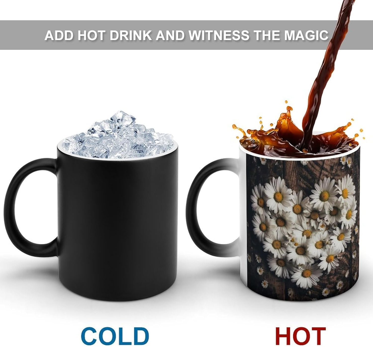 This unique color changing cups is easy to clean, Please scald it with boiling water before using it after receiving it to remove the dust generated during the production process of the cup. It is reusable, Not suitable for dishwashers, only hand wash The Heart Shaped Shape printed reusable color-changing cups are perfect for decorating your kitchen, restaurant or cafe. You can judge whether the coffee is cold by the color of the magic cup, so as to avoid drinking cold coffee