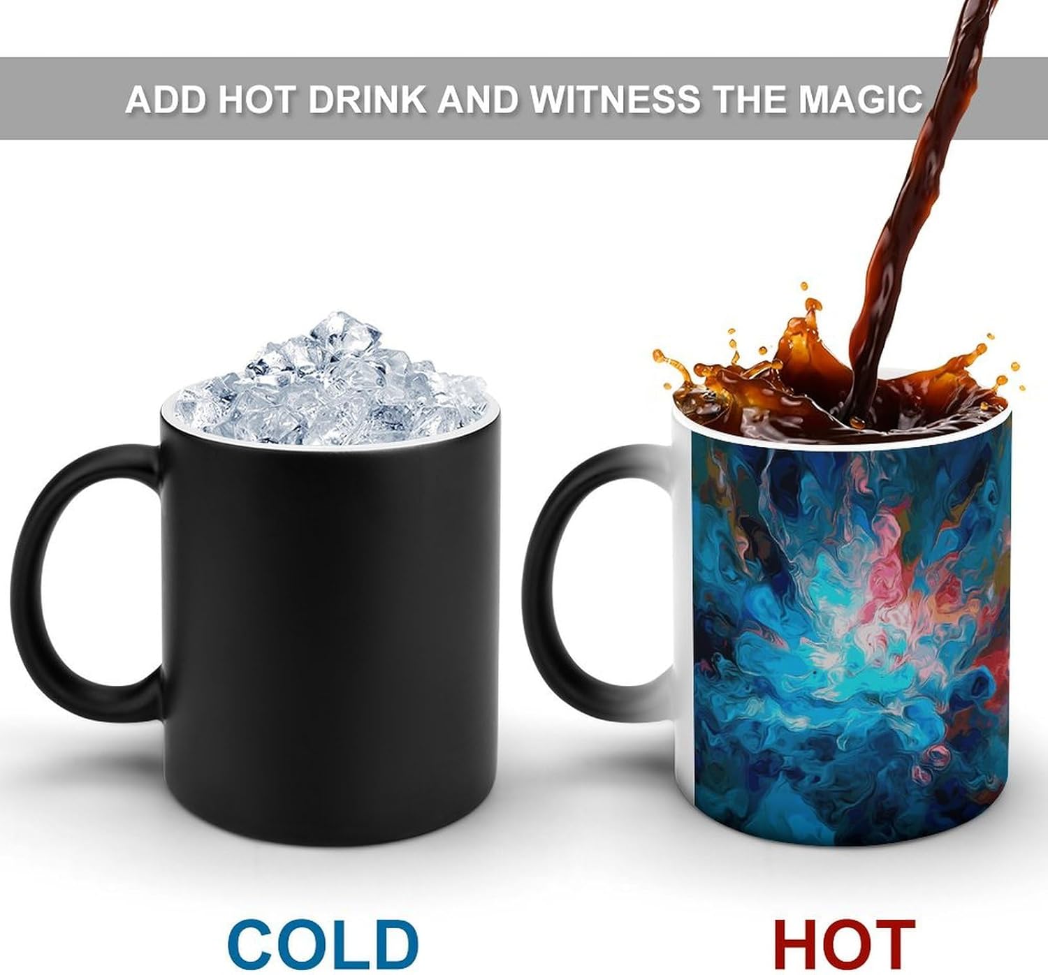 The personalized color-changing cup is made of ceramic, which feels as soft as jade and gives people a comfortable and friendly texture. Its good heat preservation performance can lock the temperature of coffee for a long timeFunny pattern print design, when filled with hot water, the cute pattern will appear and the colors will become bright.This color changing art coffee tea mug are a fun and unique addition to any home or office, adding a touch of fun to any table setting