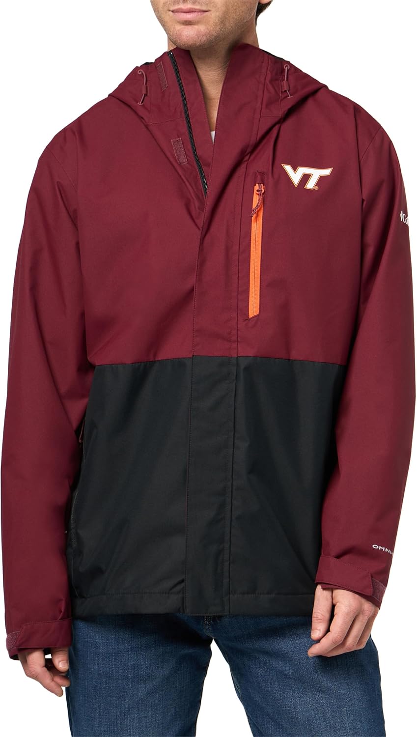 Keep covered in team colors. This waterproof-breathable jacket shows your support, adjusts in all the right places, and packs down into the pocket for fickle game day forecasts. Columbia offers this jacket in multiple colors and sizes. Regular fit.