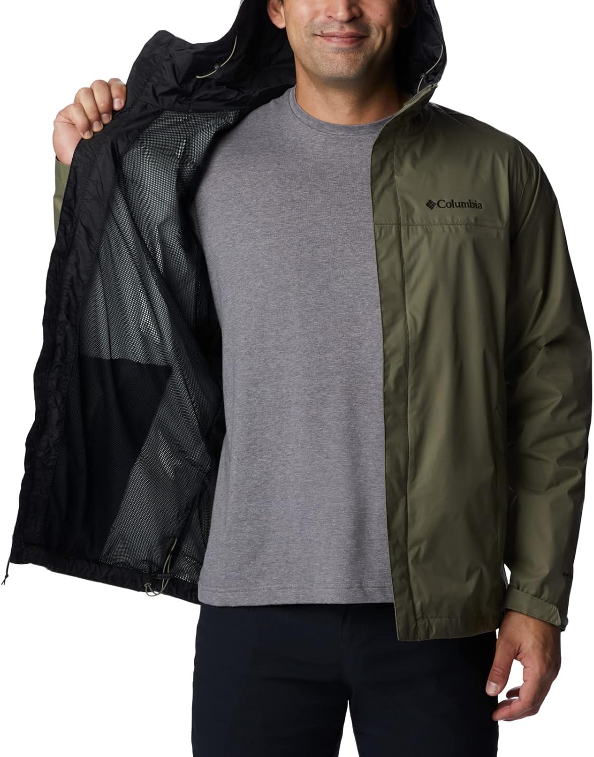 Columbia's rain jackets work around the clock to protect you from the outdoor elements. This Columbia Men's Watertight II Jacket is a rainy-day staple for its lightweight, waterproof and breathable design. The details of this jacket are essential for any rainy day. Crafted of 100% nylon material, this rain jacket is guaranteed to be waterproof; the seam-sealed construction keeps you dry while sealing the cold air out. Zippered pockets are featured on each side to secure your small items. Adjustable, velcro cuffs and an adjustable drawcord hem help give this jacket a customizable fit. Lastly, the packable silhouette make storing this staple easy. This packable rain jacket is available in a range of sizes and colors to accommodate many styles and fits. To ensure the size you choose is just right, utilize our sizing chart and the following measurement instructions: for the sleeves, start at the center back of your neck and measure across the shoulder and down to the wrist. If you come up with a partial number, round up to the next even number. For the chest, measure at the fullest part of the chest, under the armpits and over the shoulder blades, keeping the tape measure firm and level.