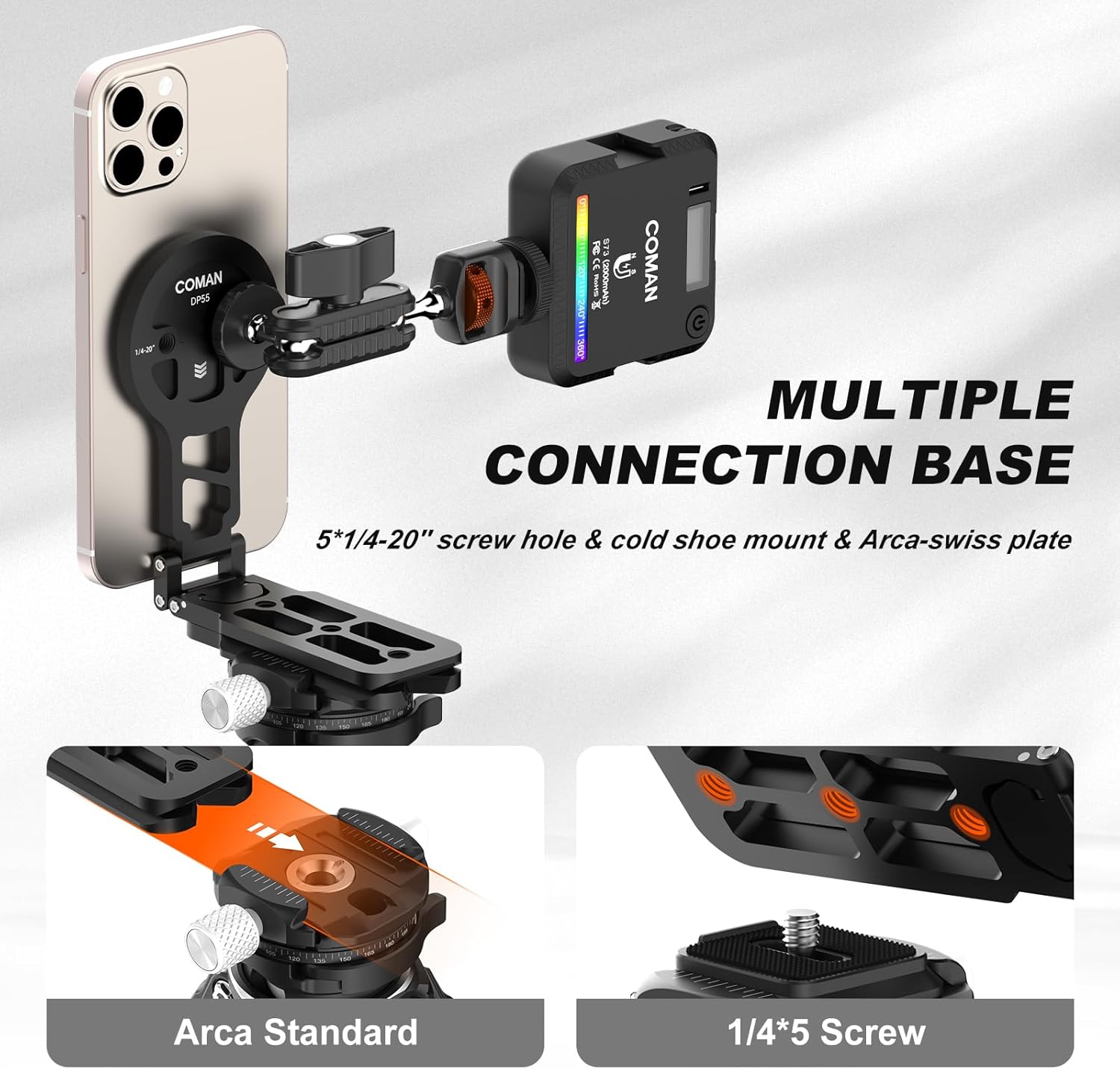 | Features | 1/4-20'' Screw Hole, Arca-swiss Base, Cold Shoe Mount, Foldable, Lightweight |