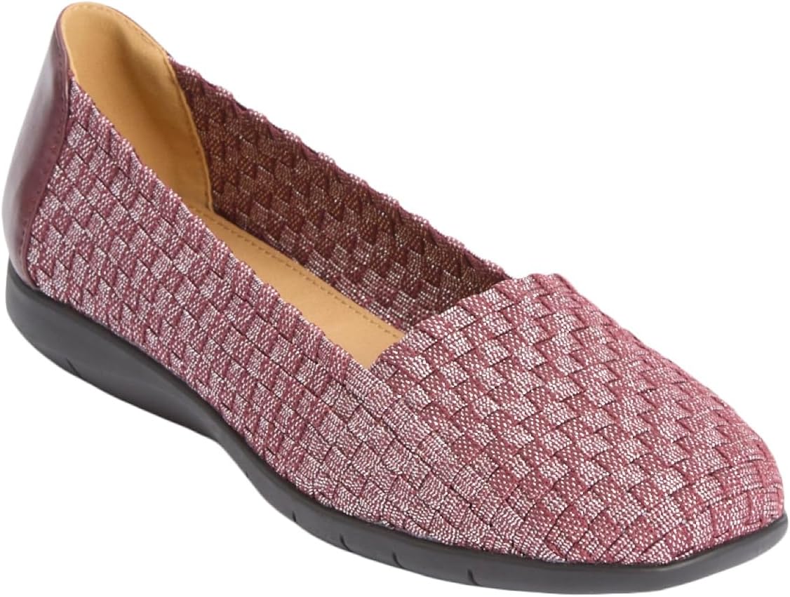 Designed for comfort and versatility, the Comfortview Bethany Stretch Woven Slip-On Flat for Women from our Energy Flex collection features a flexible stretch-fit upper for easy everyday wear and is available in Medium, Wide, and Wide Wide widths. Our 1-one best-selling flat, it delivers a custom, comfortable fit with a stretch-woven upper and cushioned insole designed to keep you feeling supported all day. A flexible, skid-resistant outsole with a grooved bottom and heel pod adds traction and spring to every step, making this go-to flat as reliable as it is versatile. FIT 1” heelbr>Comfortable and versatile flats available in full and half sizes 7-11, 12, 13 M, W, WWbr>Size 13 not available in Crimson, Brown, Dark Hunter, Grey Multi, Bronze, Multi Pastel, Multi Tie Dye, White Red, Black Metallic, Denim Metallic. FEATURES Stretch woven fabric upper for a custom fitbr>Grooved bottom with new heel pod to add spring to your stepbr>Padded insole for comfortbr>Flexible, skid-resistant outsole for a better grip FABRIC Woven Fabricbr>There will be variations in the print due to the individualistic nature of the patternbr>Manmade, imported ??WHY YOU'LL LOVE IT. Designed with Energy Flex technology, the grooved bottom and cushioned heel pad provide added comfort and responsive support with every step you take. Comfortview Shoes are crafted to blend all-day comfort and effortless style with padded insoles, flexible outsoles and an extended range of sizes and widths for your best fit.