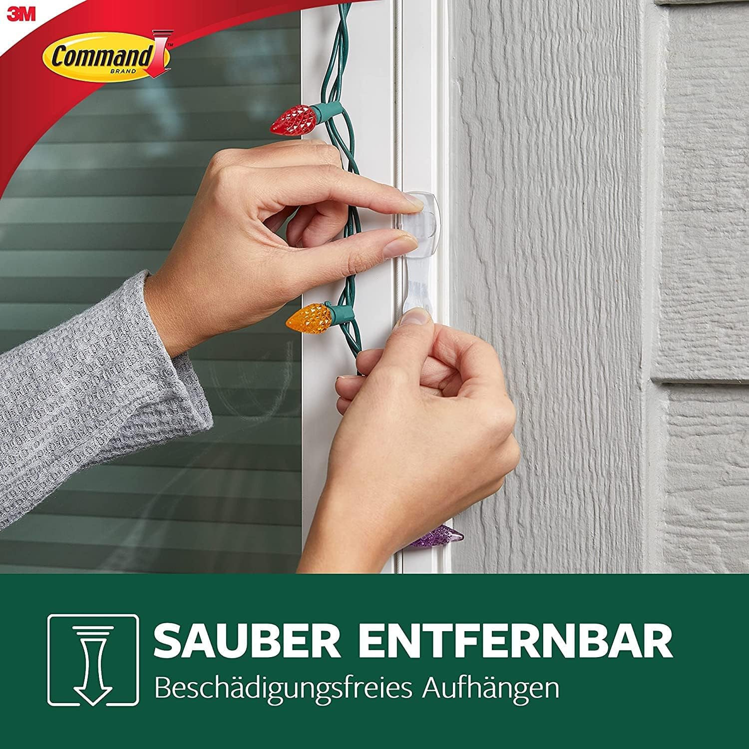 Decorate your exteriors, damage free, with Command Outdoor Light Clips by 3M. Outdoor Command Clips let you hang Christmas lights, light chains, decorations and more where you want without tools or nails. Command Outdoor adhesive holds strongly through rain, snow, and extreme temperatures on smooth, finished surfaces, and these string light clips remove cleanly¬ with no sticky residue or damage left behind. Make everyday and Christmas decorating fun and easy with Command Outdoor Light Clips.