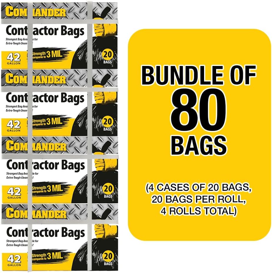 Commander 42 Gallon 3 MIL (eq) Heavy Duty Contractor Bags with Flap Ties - 32" x 46" - Pack of 80 - For Contractor, Industrial, & Outdoor