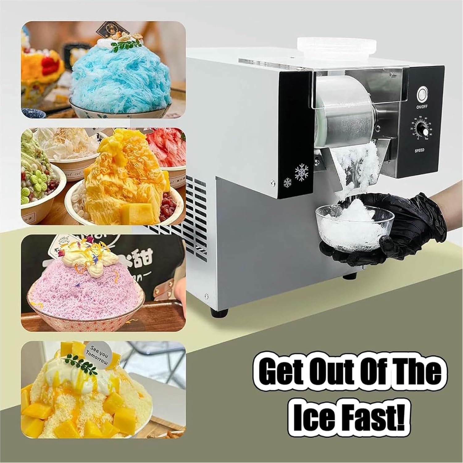 Automatic electric snowflake ice maker, snow cone shaved ice machine, snowflake ice maker electric ice crusher, suitable for restaurants, ice cream shops.Specifications: - Name: Snowflake ice maker/commercial snowflake ice maker - Rated voltage: 220V - Rated frequency: 50Hz - Power: 360W/750W/1200W - Ice production: 60KG/24H/120KG/24H/180KG/24H - Weight: 18.5KG/23KG/31KGCustomer service: If you have any questions about this product, please feel to contact us. We are honored to provide you with a satisfactory shopping experience.