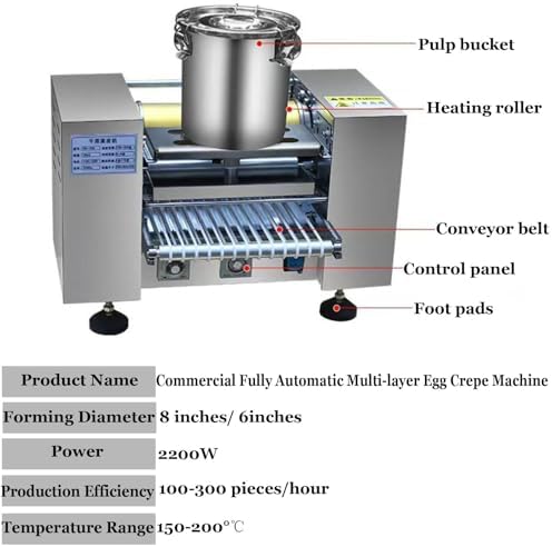 Introducing our versatile Crepe Maker, perfect for crafting delicious crepes and exploring your culinary creativity! Designed for both home chefs and commercial kitchens, this Durian Matcha Crepe Base Maker delivers consistent results with every use. With a production diameter of 6 inches or 8 inches, you can create perfectly sized crepes that are ideal for desserts, savory meals, or even gourmet snacks. Our powerful 2200W Crepe Maker allows you to produce between 200 to 300 crepes per hour, making it an efficient choice for busy kitchens or entertaining guests. The adjustable temperature range of 150-200 degrees Celsius provides the flexibility to achieve your desired crepe thickness of 0.4-1.2 mm, ensuring that you can cater to various preferences. Whether you prefer a delicate, thin crepe or a heartier option, this machine has you covered. Using our Crepe Maker is simple! Start by mixing milk, eggs, cake flour, and melted butter, then sift the mixture for optimal consistency. When you're ready to create, just pour the batter into the stainless steel inner pot, ensuring the valve is closed for even cooking. With a baking time range of 0-60 seconds, you can whip up multiple crepes in no time, allowing you to impress friends and family with your culinary skills. The included Crepe Cake Mold ensures that your creations come out perfectly shaped, while the compact design (50 x 35 x 35 cm and weighing 30 kg) makes it easy to store when not in use. Whether you're hosting a brunch, catering an event, or simply enjoying a weekend treat, our Crepe Maker is the ideal solution for bringing delicious crepes to your table. Elevate your cooking experience and delight your taste buds with this essential kitchen appliance!