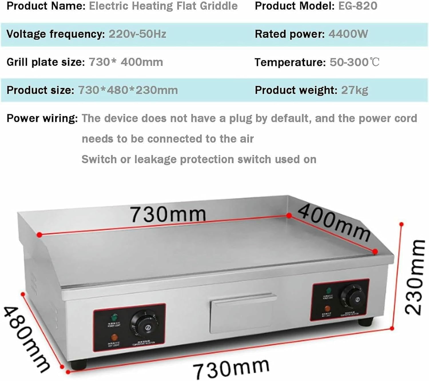 Business Machines Powerful and efficient frying pan with excellent cooking performance. Perfect for preparing bacon, burgers, cheesesteaks and more in a busy snack bar, food stand or restaurant. This table bakeware is an efficient and durable addition to your kitchen. Independent controls and multifunctional features allow you to customize this device to your needs! Commercial electric griddle: even heating, large cooking area Our commercial electric griddles are perfect for the home or restaurant. It can prepare various dishes and save your time. Stainless steel is durable and easy to clean. Thanks to precise temperature control, the heating tube is heated evenly and the food tastes more delicious. Various thoughtful details - oil drip holes, oil collection containers, heat dissipation holes, etc., as well as accessories, create a high-quality foundation for your use. Come and choose us. Wide range of applications Can be used in domestic or commercial areas. Perfect for pancakes, crispy bacon, grilled cheese, full breakfasts, fried dishes, omelettes, pizza, steaks, burgers. Package Contents: 1 countertop baking pan Tip: Before using your baking pan for the first time, clean it with dishwashing liquid and water from the cooking pan, then heat it.