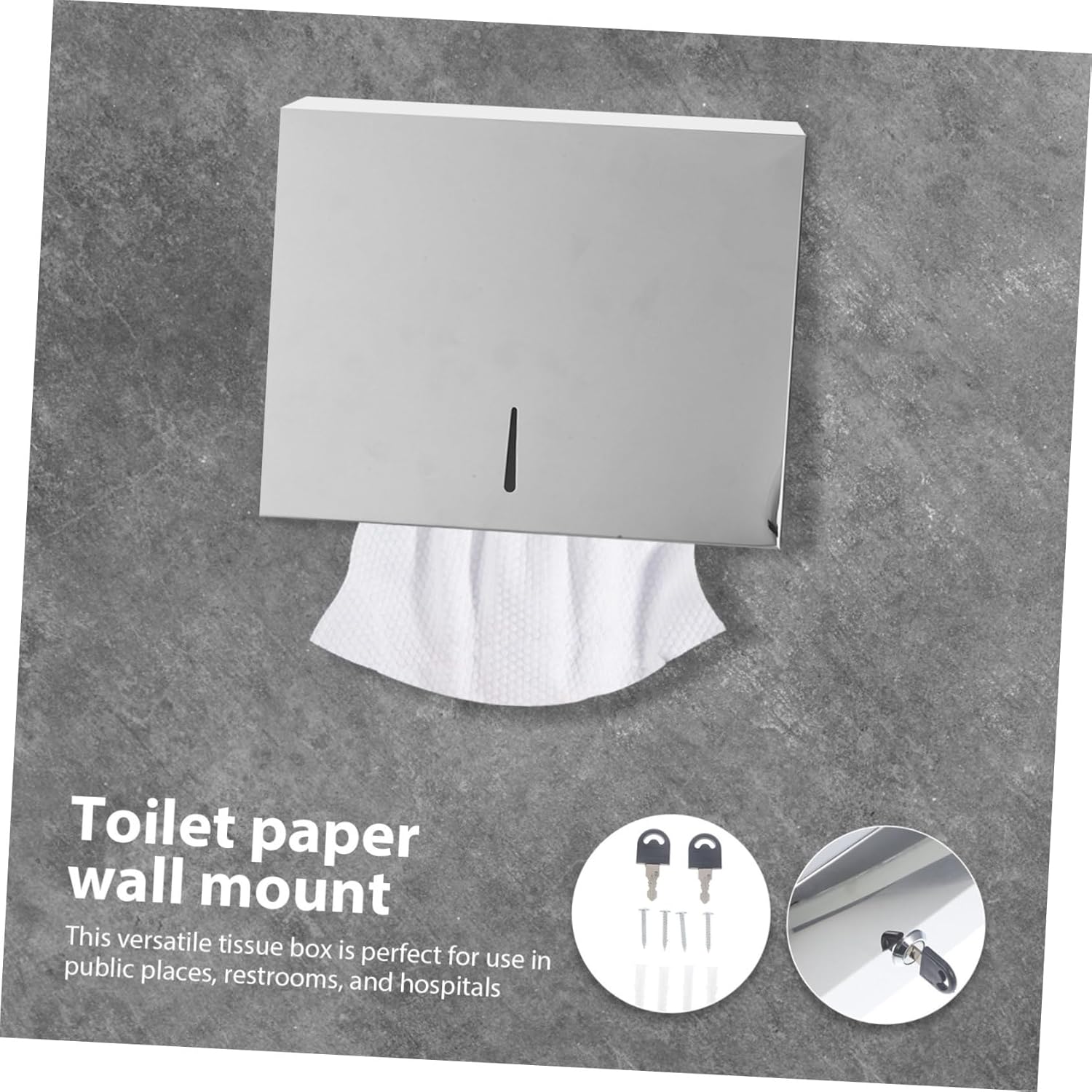 Package List 1 x Paper Towel Dispenser Features -Material:Stainless steel bathroom paper towel dispenser -Color:Silver wall toilet paper holder -Size:28.50X26.50X10.00cm/11.20X10.41X3.93in wall mounted toilet paper holder -This versatile tissue box is for use in public places, restrooms, and hospitals toilet paper holders. -The stylish color exterior adds of elegance and enhances the overall aesthetics of any space bathroom paper towel holder wall mount. -stainless steel construction ensures durability and reliability paper towel dispenser. -The paper towel dispenser adds convenience and peace of mind, making it suitable for use in any environment toilet paper holder wall mount. -With its user-friendly design, this paper towel dispenser allows for quick replacement of tissue papers toilet paper wall holder.Goods Informationtoilet paper holder wall mount With its convenient size, paper towel dispenser is easy to replace tissue papers, providing a clean using experience.bathroom paper towel holder wall mount The paper towel dispenser is made from stainless steel, not only resistant to wear and tear but also sturdy.paper towel dispenser Its sleek design adds of elegance to any setting