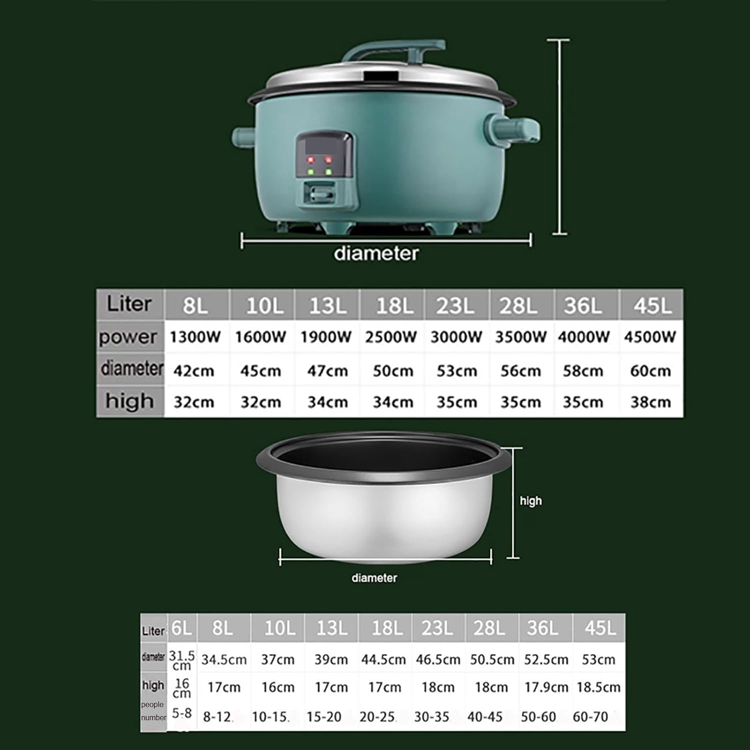 Introducing our versatile Rice Cooker, designed to meet your culinary needs with efficiency and ease. This high-capacity cooker is perfect for gatherings, making it an essential addition to your kitchen. With various sizes ranging from 8L to 45L, it caters to groups of 8 to 70 people, ensuring that no one goes hungry during your family dinners, parties, or events. Equipped with a reliable mechanical control, our Rice Cooker features a non-stick liner for effortless cleaning and consistent cooking results. Whether you're preparing fluffy rice, sushi rice, porridge, or even delicious cakes and stews, this cooker provides the perfect solution for all your cooking adventures. The user-friendly design allows you to focus on enjoying your time with family and friends while it handles the cooking for you. The cooker’s heating system ensures even heat distribution, allowing for perfectly cooked rice every time. The engraved measurements inside the pot guide you on the ideal water-to-rice ratio, simplifying the cooking process. Plus, each unit comes with a local conversion plug tailored to your region, ensuring compatibility and convenience. Investing in our Rice Cooker not only enhances your cooking experience but also promotes joyful moments shared around the dining table. Whether it's a cozy family meal or a large celebration, this appliance is here to help you create memorable dishes with minimal effort. Embrace the art of cooking with our dependable Rice Cooker, and make every meal an occasion to remember.