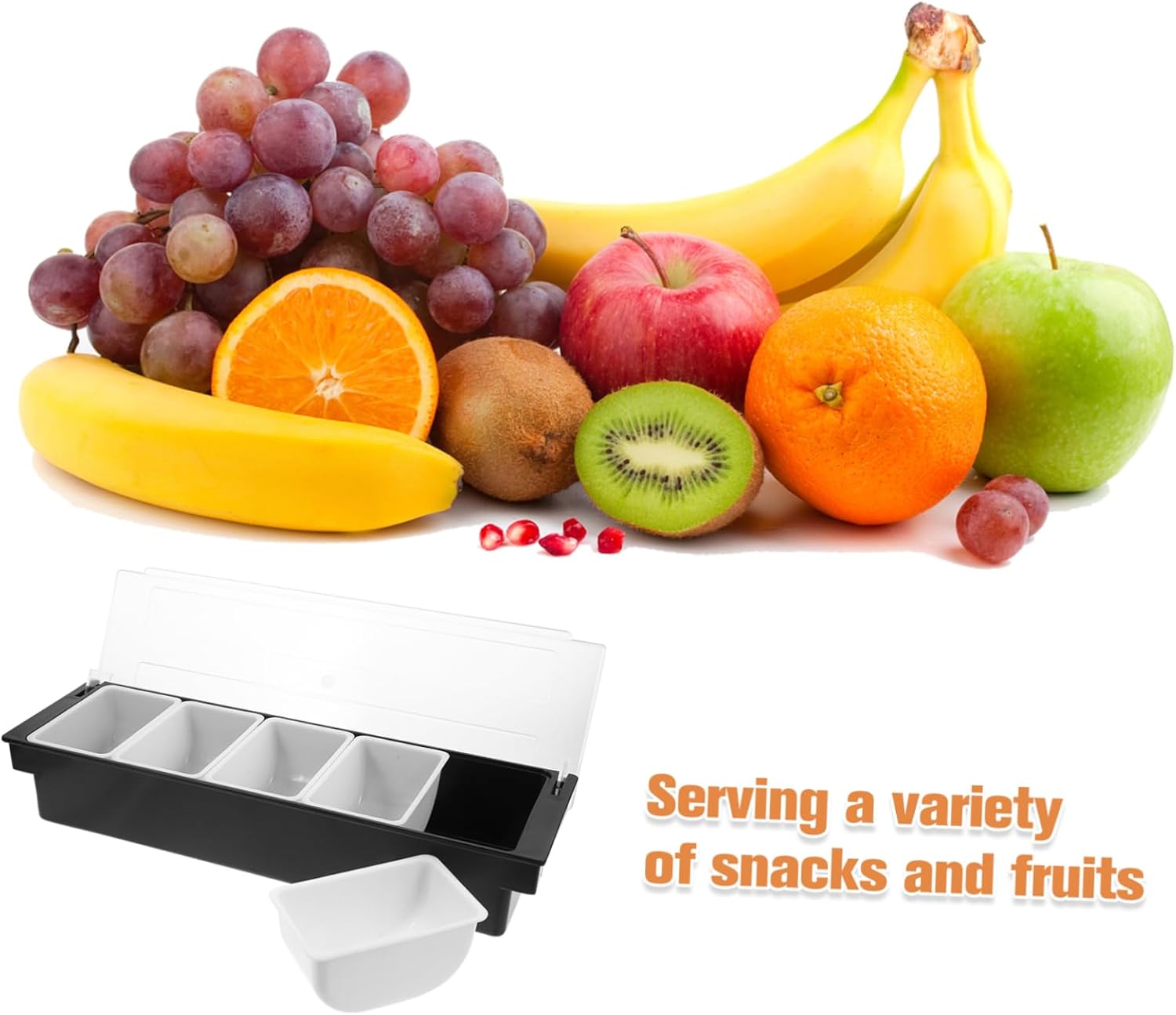 Package List 1 x divided storage box Characteristics -Smooth construction: this container is designed for durability and ease of cleaning chilled serving trays for parties -Size:49.50X16.00X9.50cm/19.45X6.29X3.73in chilled serving tray -Modern and elegant: great addition to any kitchen decor, enhancing both aesthetics and functionality chilled condiment server with lid -Color:Multi restaurant supplies -Versatile: ideal for use in the kitchen , this container can also be used to store small household items bartender accessories -Material:Plastic chilled condiment server -Organized: features multi-compartments for easy and organized storage of different condiments condiment tray with lid -Airtight lid: the secure lid provides a tight seal that keeps moisture out, preserving the freshness condiment containersGoods Informationcondiment tray with lid Whether you're using it at home, in a restaurant, or at a bar, it helps keep everything organized and easily accessible.chilled condiment server with lid This compartment snack container is a versatile and practical for storing and serving a variety of foods