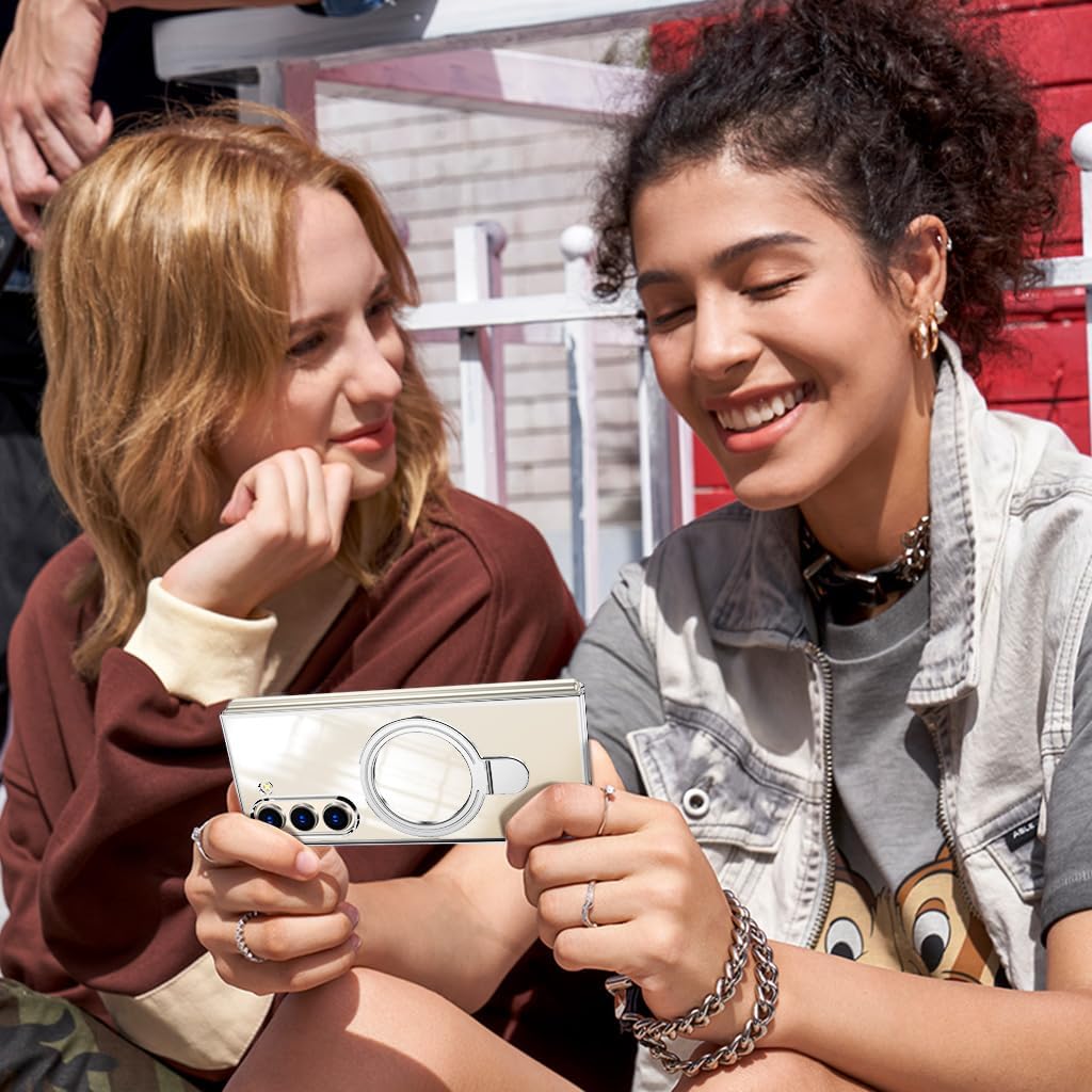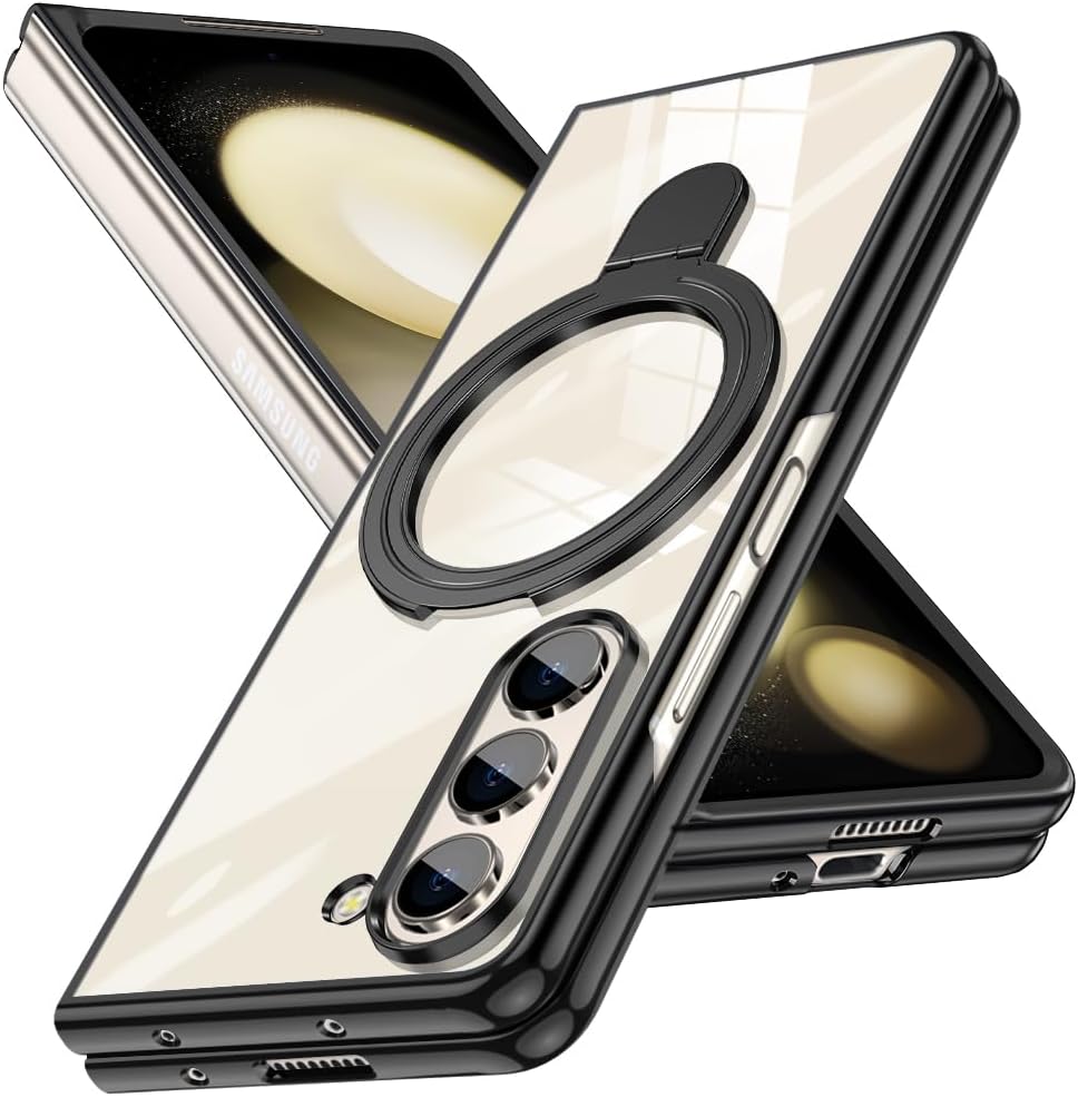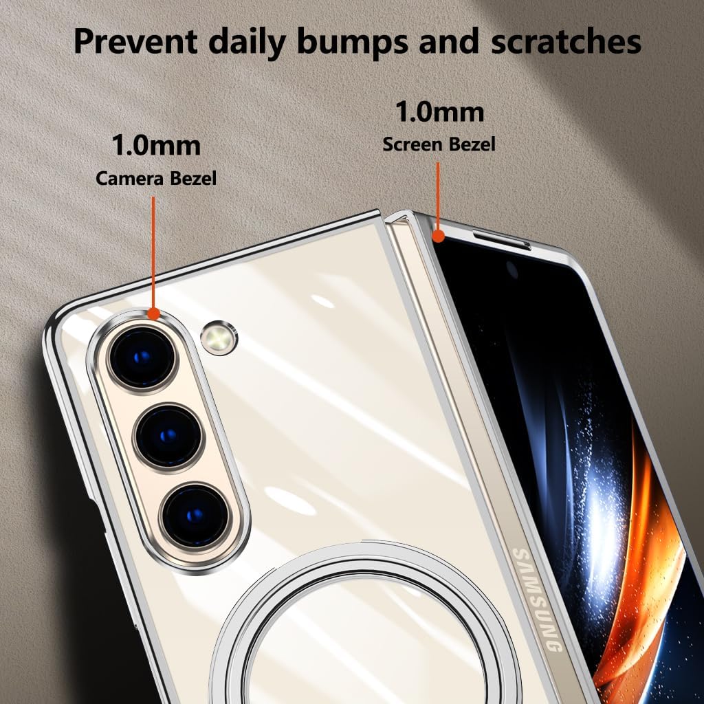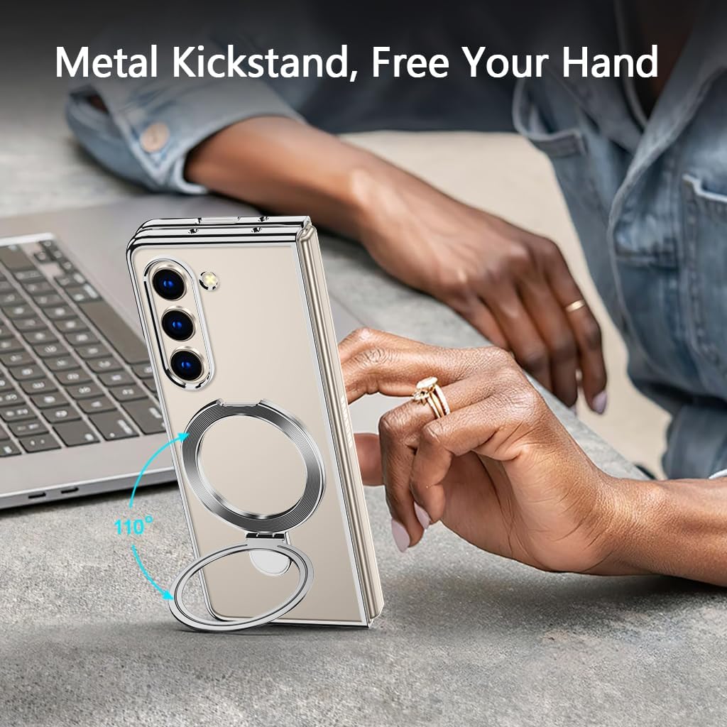 This case is made of high quality tough PC material which protect your phone perfectly from falls and shocks;Thin and light design, delicate kickstand, electroplated frame, bright and beautiful colors, transparent back, fashionable and elegant, everything is adding to the beauty of your phoneThere is a metal ring on back which you can hold your phone more safe and easy;And you can also put your phone with this case on desk to watch vedio or read book in comfortable angle with hands free;Whether you prefer a vertical setup for video calls or a horizontal orientation for TV shows, this phone case with kickstand has got you covered;The kickstand could be folded easilyPrecise cutouts for all ports, not Interfere with microphone using;Slim body case feels smooth but not slippery;Easy to cleanWe'd love that you can show your personality with our cases;Designed for customers who appreciate a sleek and ultra slim case thin without sacrificing protectionNew minimalists design clear case fits perfect to the Galaxy Z Fold 6;Please Check Your Phone Model and Choose The Right Model Before Buying