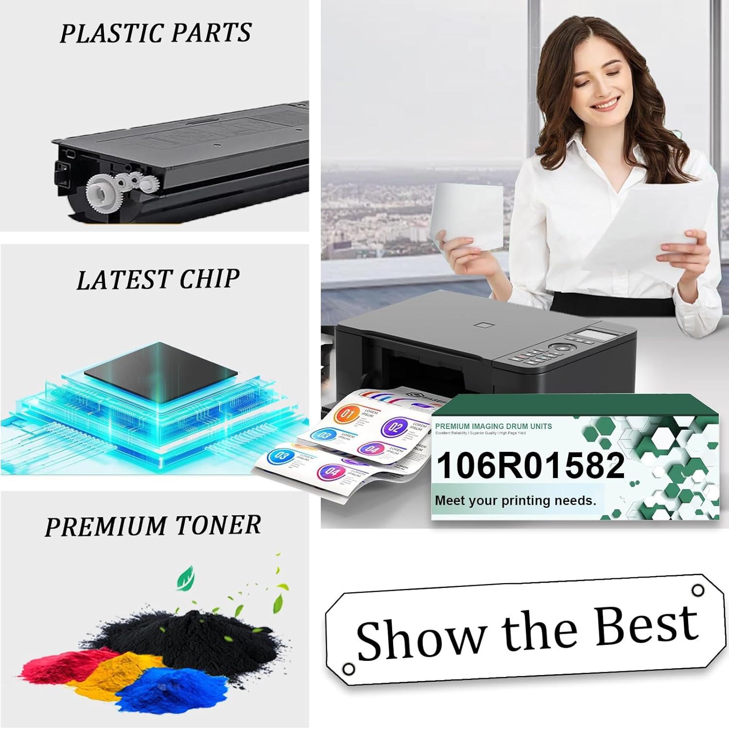 WarmTip: 1. Please confirm our drum unit fits your printer model. 2. Be careful not to touch the chip or drum nozzle. Excellent compatibility, focusing on your printing needs: 1. Core Matching: 106R01582 drum unit is designed for 106R01582 black, 106R01582 cyan, 106R01582 magenta, 106R01582 yellow drum unit needs. 2. Widely Applicable: Compatible for Xerox Phaser 7800 7800DN 7800DX 7800GX printers. Each Package Contains: 1 carefully sealed 106R01582 drum unit, ready to install and use. Exceptional Print Quality, Professional Results: 1. Crisp & Clear: Premium drum delivers rich colors, crisp text, and detailed images—every time. 2. Consistent Output: Smooth, reliable performance from first page to last—no smudges, streaks, or background gray. 3. Smooth & Safe: Optimized formula reduces paper jams and protects your printer’s internal components for longer-lasting performance. An ideal choice for home, office, school users looking for professional quality printing.