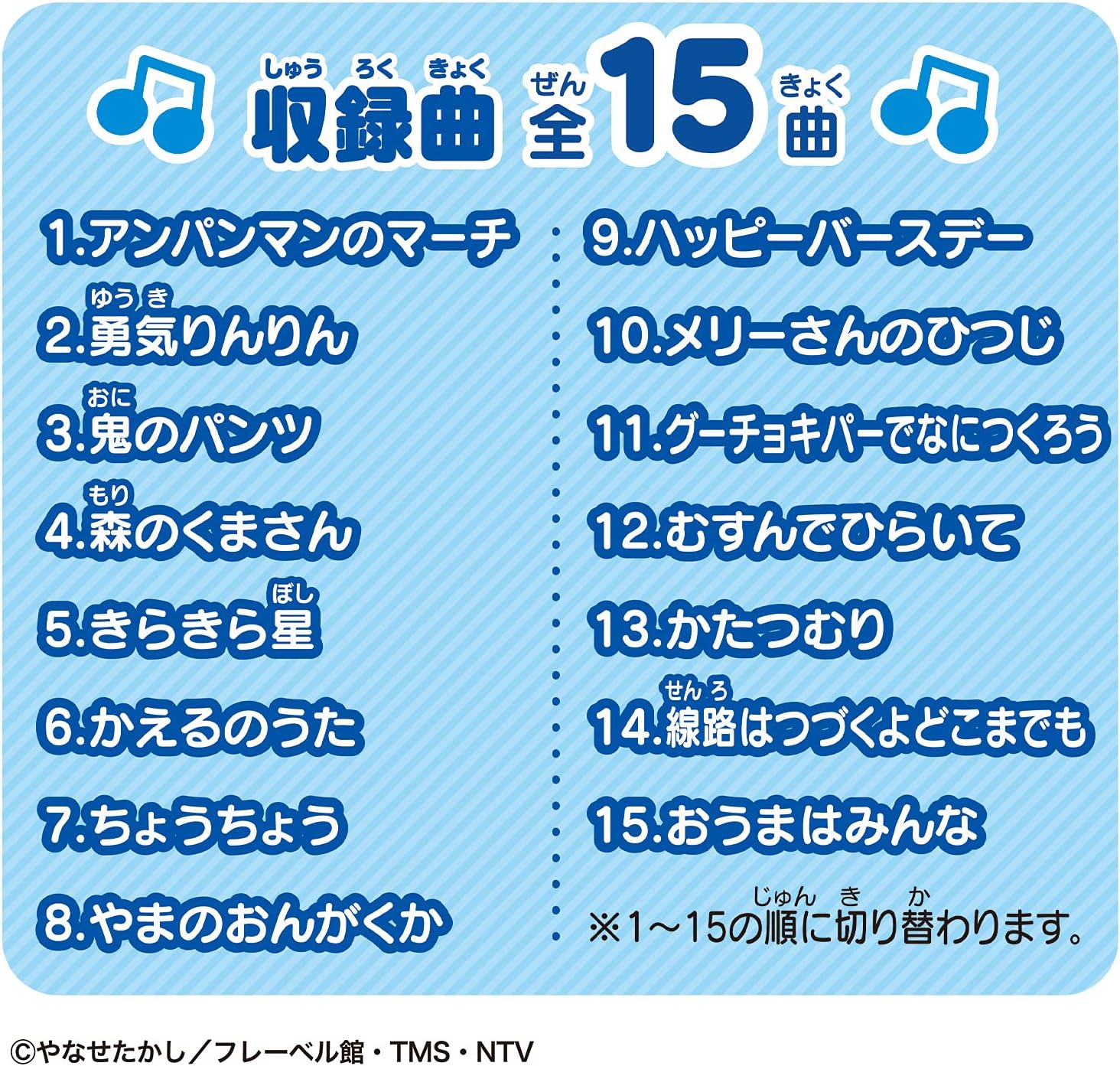 "Yes! Introducing Anpanman "Anpanman to play music with the whole body. This toy will make fun sounds from the mat when you step to the music. You can move your whole body and play music in the house. You can enjoy playing with all 3 modes, and it includes plenty of 15 songs, including Anpanman March. Also includes Anpanman and popular songs, 4 musical instrument sounds, and 4 different animal sounds, so you can play it with a variety of sounds. [Set Contents] Mat body: 1 [Batteries] Requires 3 AAA batteries (not included). (Everything other than those included with this product is sold separately. )