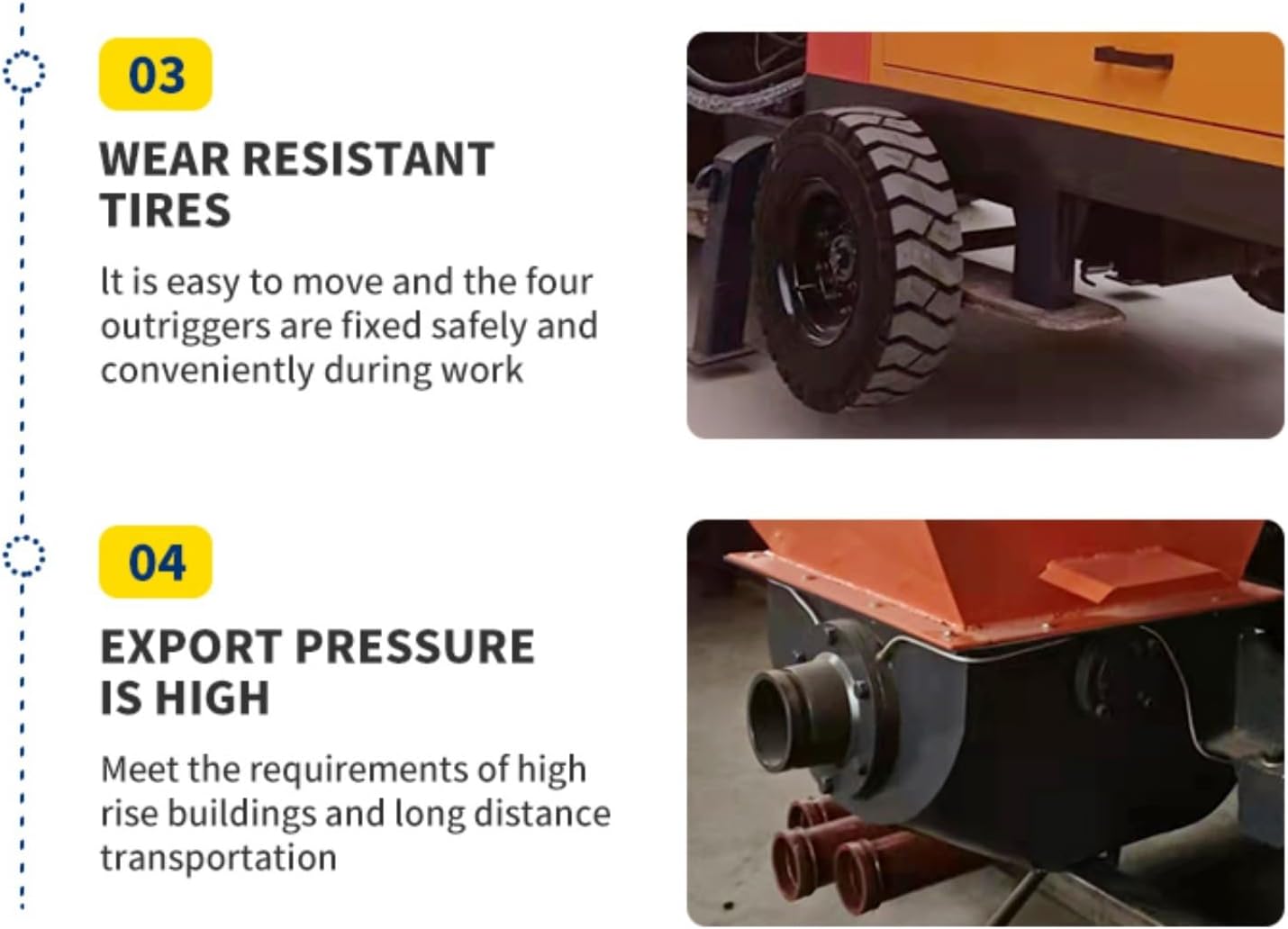 Product Name: Concrete Mixer Keyword:Construction Machinery Concrete Pumps Application:Construction Engineering Color:Customized Color Warranty:1 Year Max. Vertical Conveying Distance:100 M Max. Horizontal Conveying Distance:200 M Core Components:Engine, Pump Type:Construction Device Applicable Industries:Building Material Shops, Manufacturing Plant, Construction Works , Energy & Mining Machinery Test Report:Provided Video Outgoing-Inspection:Provided