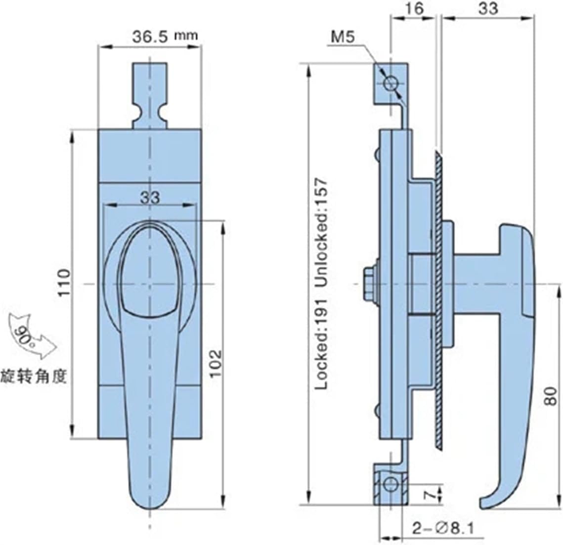Keyed PadlocksSize : 110*36.5mmModel Number : 4040000018Lock Type : handle lockmaterial : zinc alloy+ iron