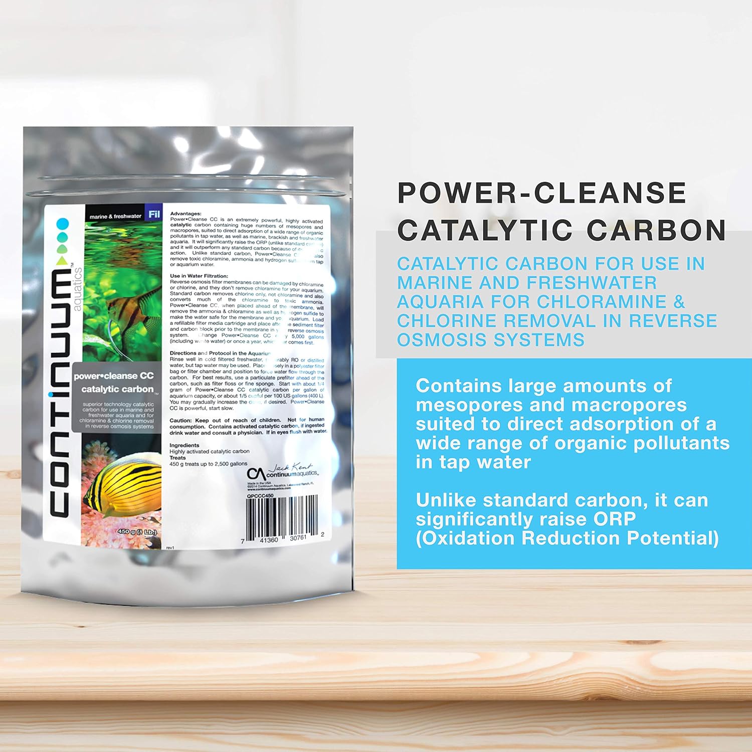 Power Cleanse CC is an extremely powerful, highly activated catalytic carbon containing huge numbers of mesopores and macropores, suited to direct adsorption of a wide range of organic pollutants in tap water, as well as marine, brackish and freshwater aquaria. It will significantly raise the ORP (unlike standard carbon) and it will outperform any standard carbon because of its catalytic action. Unlike standard carbon, Power Cleanse CC will also remove toxic chloramine, ammonia and hydrogen sulfide from tap or aquarium water. Power Cleanse CC is powerful, you don’t need much! Reverse osmosis filter membranes can be damaged by chloramine or chlorine, and they don’t remove chloramine for your aquarium. Standard carbon removes chlorine only, not chloramine and also converts much of the chloramine to toxic ammonia. Power Cleanse CC, when placed ahead of the membrane, will remove the ammonia & chloramine as well as hydrogen sulfide to make the water safe for the membrane and your aquarium