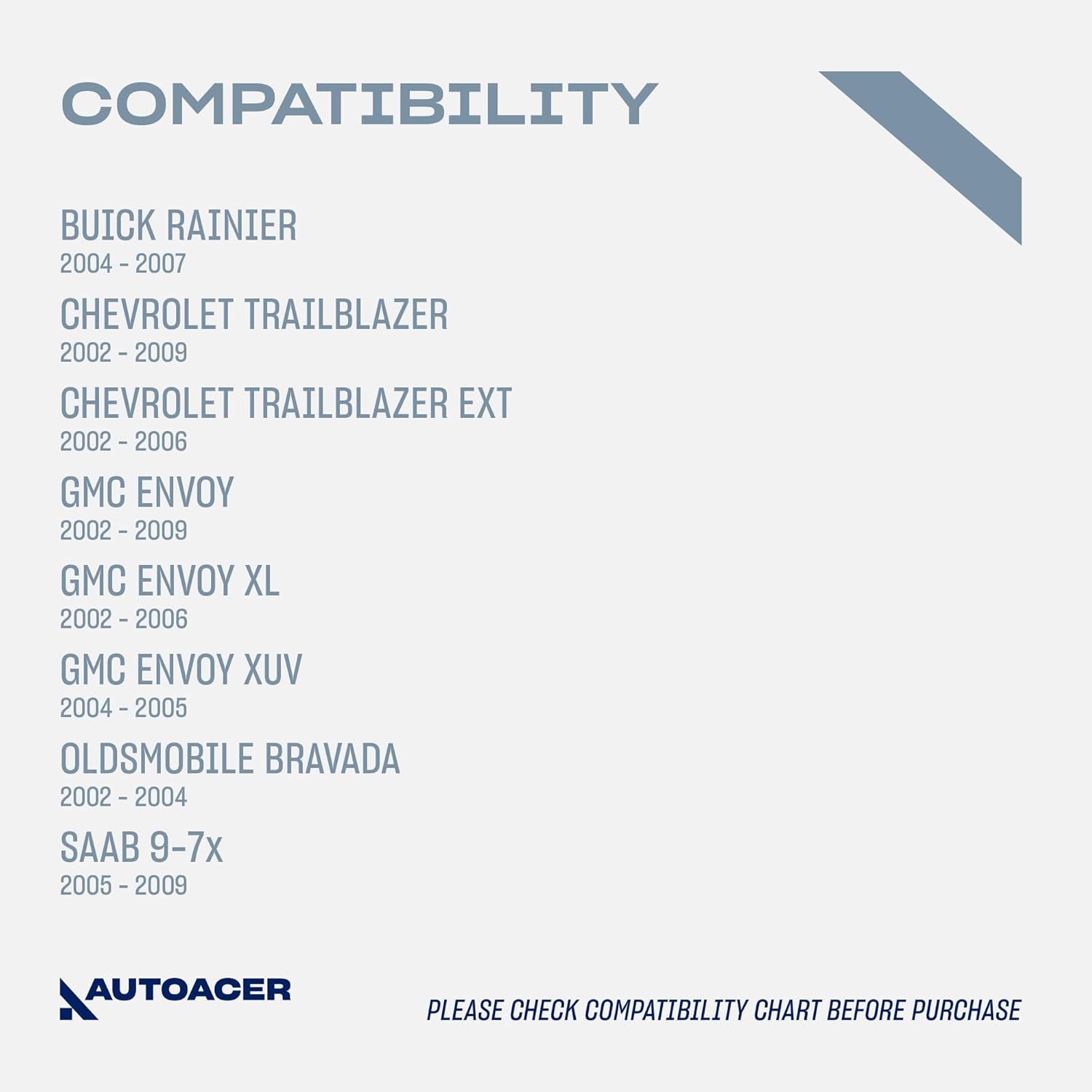 Upgrade the suspension of your Chevy Trailblazer or Envoy with the AUTOACER 10-Piece Front Upper and Lower Control Arm Bushing Kit. This comprehensive kit includes front upper and lower arm bushes, providing a complete solution for enhanced performance and stability on the road. Crafted with precision, the kit features 4 front upper control arm bushings and 6 front lower control arm bushings, all made from durable rubber and metal materials. The AUTOACER Bushing Kit boasts 100% accuracy of fit, making it easy to replace your worn-out control arm bushings. No drilling is required, and the kit comes with all the necessary hardware for a hassle-free installation. The OE/OEM part numbers ensure a perfect match, guaranteeing a seamless fit on your vehicle's front, left, right, upper, and lower positions. Designed to meet OE/OEM specifications, this kit is a perfect fit for models such as Trailblazer (2002-2009), Envoy (2002-2009), Rainier (2004-2007), and more. The included interchangeable part numbers further enhance compatibility, covering a range of models for a versatile solution. The kit includes 10 pieces - Brand New - Superior Quality: 4 pcs x Upper Control Arm Bushings - Left + Right 6 pcs x Lower Control Arm Bushings - Left + Right. OEM PART NUMBERS: 19133553 / 19133554 / 19133555 / 19133556 25784239 / 25788240 / 8191335530 / 8191335540 8191335550 / 8191335560 / 8257842390 / 25786774 25786775 / 8257867740 / 8257867750 / 25918964 8259189640 / 25918965 / 8259189650 / 8-19133-553-0 8257867740, 25786775, 8257867740, K200269, 19133553, 19133554, 45G1387, 15018251, K200270, 25918964, 8259189640, K200271, 25918965, K200272. VEHICLE COMPATIBILITY: 2004-2007 RAINIER 2002-2009 TRAILBLAZER 2002-2006 TRAILBLAZER EXT 2002-2009 ENVOY 2002-2006 ENVOY XL 2004-2005 ENVOY XUV 2002-2004 OLDSMOBILE BRAVADA 2005-2009 9-7x. AUTOACER takes pride in delivering premium parts, and this kit is no exception. The manufacturer warranty of 2 years reflects the confidence in the product's durability and performance. The surface finish is OE/OEM spec, ensuring a quality appearance that matches the original parts. Upgrade your vehicle's suspension with confidence and reliability using the AUTOACER Front Upper and Lower Control Arm Bushing Kit.