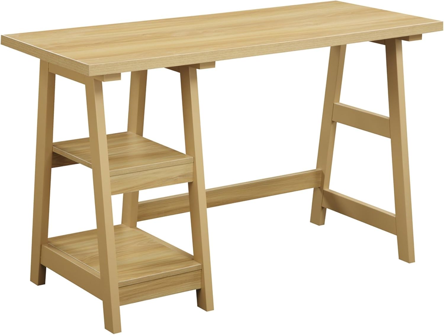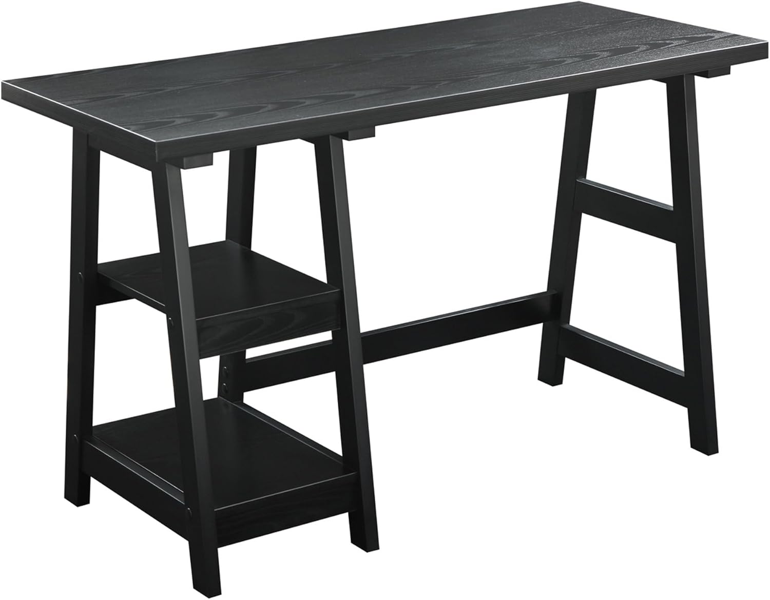 The Designs2Go Trestle Desk by Convenience Concepts, Inc. has a variety of key features. With two fixed shelves that provide plenty of space for the extras - such as files, books, or even supplies. The Perfectly sized desk top has ample space for computer, keyboard and mouse. All the necessities and then some. The sleek contemporary design is just an eye pleasing plus.