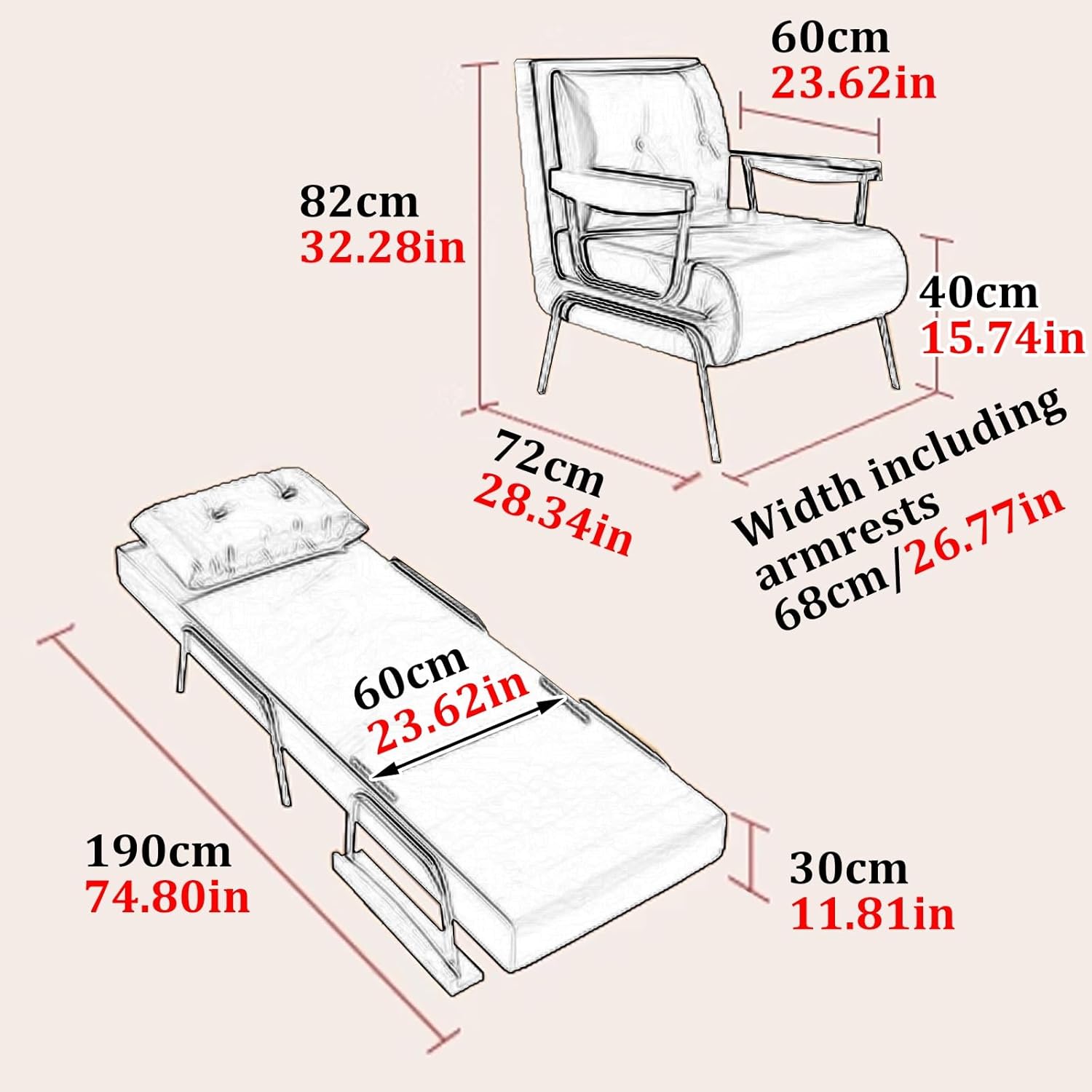 Experience the perfect blend of practicality and style with our versatile sofa bed, designed to enhance modern living spaces. Its sleek, minimalist design seamlessly transitions between a comfortable sofa for daily use and a cozy bed for overnight guests. This multifunctional piece is ideal for urban apartments and small homes, combining aesthetics with functionality to meet your everyday needs. **Product Highlights:** - **Modern Design:** The contemporary look fits effortlessly into any decor, making it a stylish addition to your living room, guest room, or office. - **Easy Assembly:** Enjoy a hassle-free setup with simple self-assembly instructions included. **Use Scenarios:** - **Daily Living:** Perfect for compact areas, this sofa bed serves as a comfortable seating option during the day. When friends or family come over, you can quickly transform it into a bed, providing a cozy sleeping space without sacrificing style. - **Office Relaxation:** Use it as a single sofa chair in your workspace for reading or taking a break. Easily convert it into a resting bed to recharge during your lunch or coffee breaks. - **Leisure Time:** Adjust the backrest to your desired angle, enjoy your favorite beverage, and unwind after a long day. **Cleaning Convenience:** The elevated base allows cleaning robots to navigate underneath, ensuring effortless maintenance of your living space. **Important Notes:** 1. Wrinkles in the folding area are normal and part of the design process. 2. Dimensions are measured with the current expanded form, and please allow for a 3-5 cm variance due to padding and edging. 3. Our customer support is always available for your inquiries, and we guarantee a response within 24 hours.