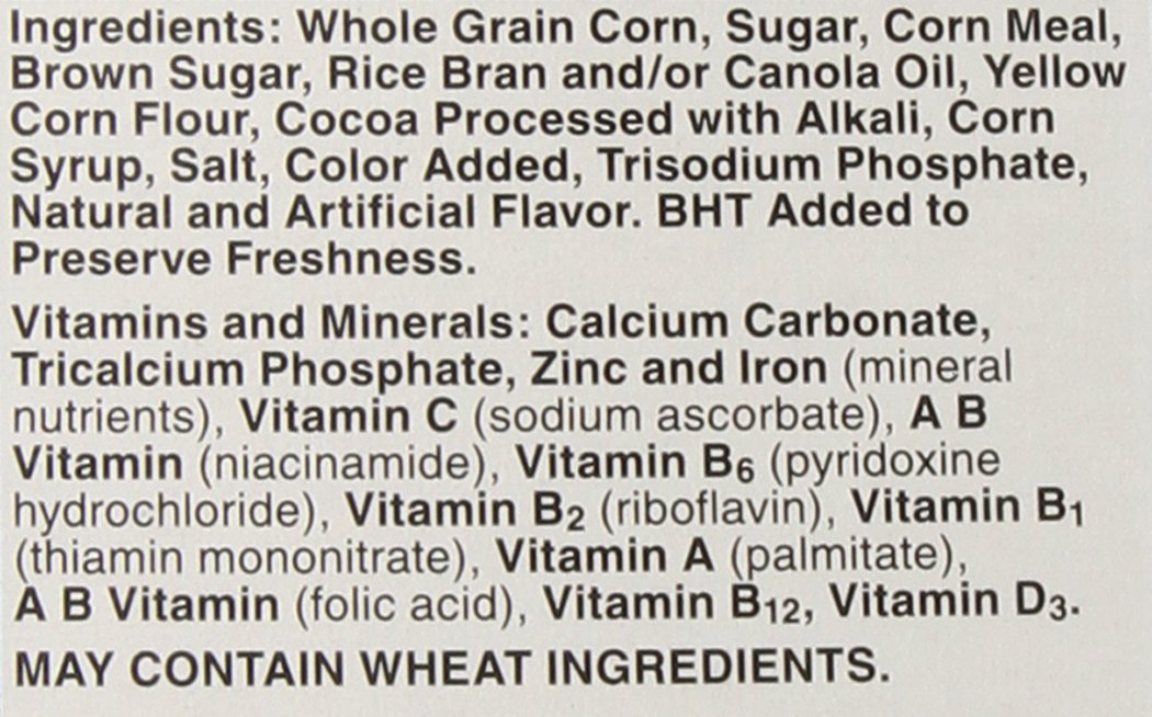 Cookie Crisp Chocolate Chip Cookie Flavored Cereal is packed with nutrients and contains complete grains, which can help fuel your morning. That's why whole grain is the first ingredient in all Big G cereals and why Cookie Crisp has no high fructose corn syrup. Goodness first. This cereal contains 10g whole grain per serving; at least 48 grams recommended daily. A whole grain food is made by using all three parts of the grain. All General Mills Big G cereals contain more whole grain than any other single ingredient.