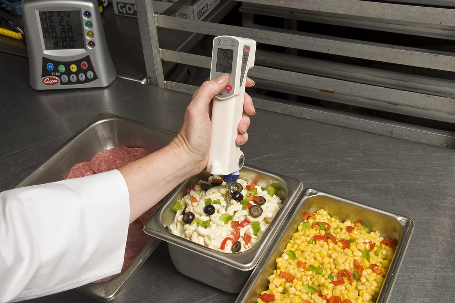 Measure surface temperature fast and avoid cross-contamination. Use the retractable RTD puncture probe for insertion temperature reading. During temperature checks, the green and red ligts indicate if the temperature is within the HACCP safe zone.