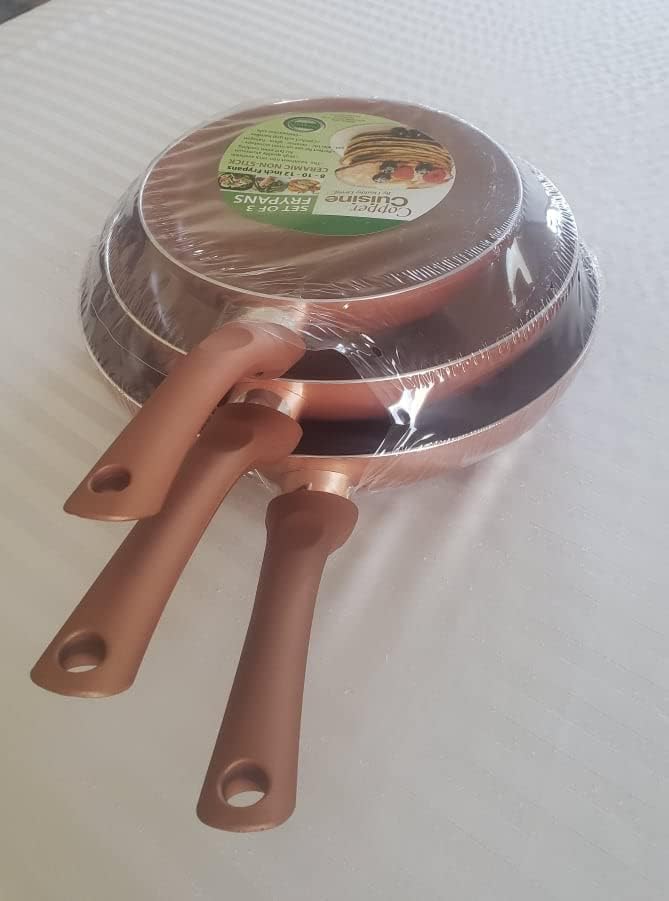 The Copper Cuisine by Healthy Living triple pack skillets is the healthiest nonstick available. These pans are perfect for making sautéed veggies, fish, and much more! Each pan features a comfortable soft-grip handle, and high-quality aluminum for fast and even heating. Plus these can be used on most stovetops (gas, electric, ceramic, glass, and halogen).