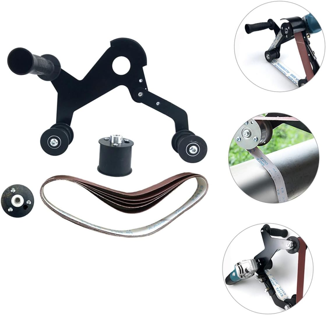 Package List 1 x belt sander 1 x roller 5 x sanding belts Features -Color:Black pipe polisher -Size:32.00X27.00X9.00cm/12.58X10.61X3.54in belt sander attachment for grinder -Product Info:Belt sanding machine polishing machine -Material:Iron, rubber, sandpaper power belt sanders - Support the mechanical rotating body, reduce the friction coefficient during its movement, and ensure its rotation accuracy polishing attachment. - It can achieve the effect of grinding, drawing, polishing and mirror surface treatment hand held sander - The protective cover is designed to prevent and foreign matter from flying out, and the operation is safe belt sanders for woodworking. - This belt sander is manufactured with professional technology to ensure the product can work for a long time pipe sander. - The round tube sander is equipped with abrasive belts suitable for grinding stainless steel tubes, wooden tubes, aluminum tubes, copper tubes, titanium tubes, etc belt grinder.Goods Informationhandheld sander Easy to install and use, it can be easily applied to , a very practical accessory that will meet your needs well.belt grinder sander This product is a belt sander, which is made of durable iron, sandpaper and rubber material, with good texture, safe and practical