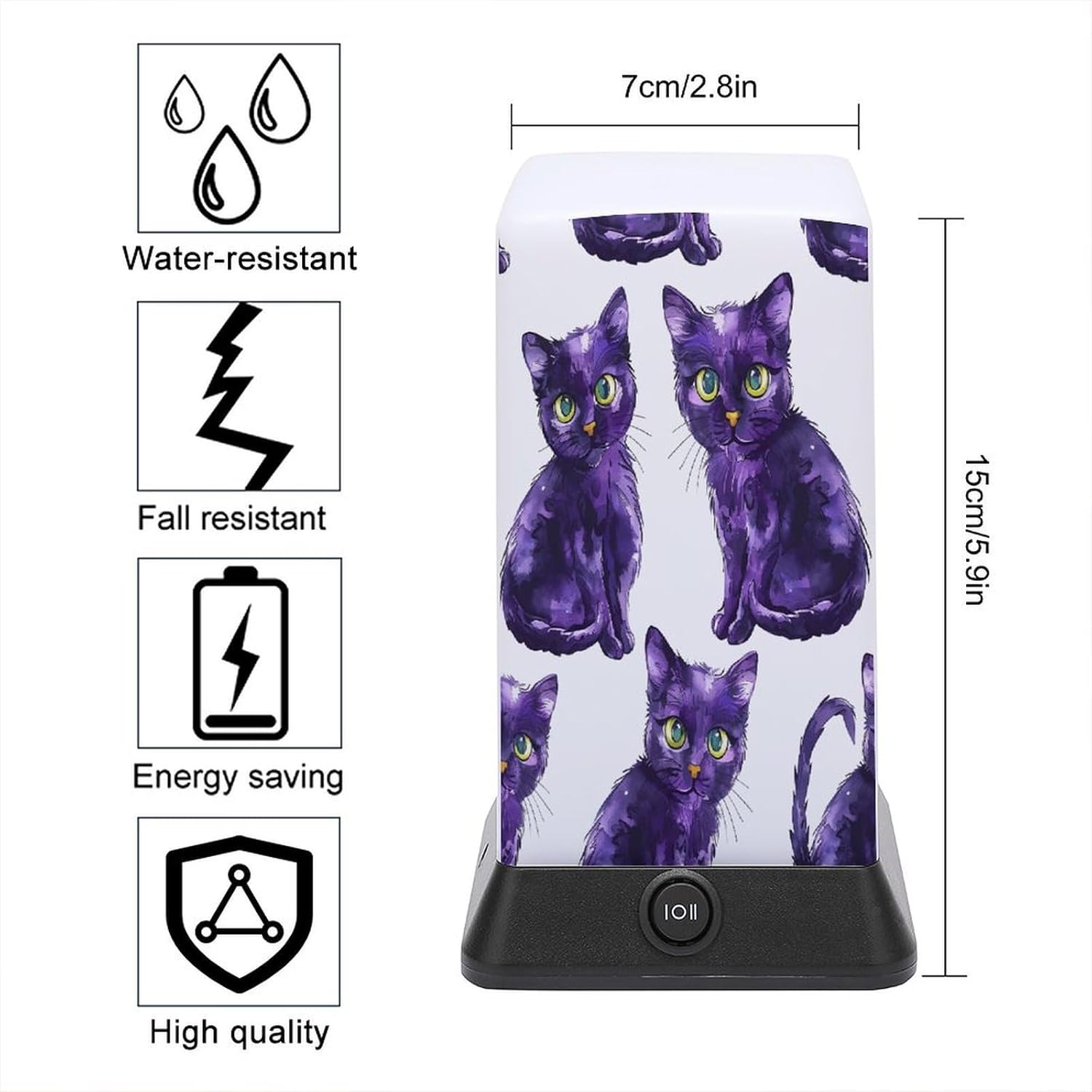 Tired of groping in the dark at night? Looking for a desk lamp that's both practical and stylish? Our Hand Drawn Cat printed small desk lamp is the solution you've been looking for—designed to make everyday life easier and more personalizedSay goodbye to the same old, cookie-cutter desk lamps. We use UV printing technology to imprint your lamp with a design. Even years later, these designs remain visible, transforming an ordinary desk lamp into a treasured keepsakeThe soft, warm glow is a game-changer. For night owls, it means no more waking up your partner. For those afraid of the dark, it's a nighttime companion that dispels the darkness and helps them fall into a deep sleep. Even at the bar, it creates a warm and cozy atmosphere without being overly dazzlingIt's compact and portable, making it easy to place anywhere—by your bed, on a bathroom counter, or to take with friends. Its thick plastic material withstands accidental knocks and can be kept clean with a quick wipeStruggling to find a gift that's both practical and thoughtful? This lamp for dorm ticks all the boxes. It'll be a unique gift that shows you care. Your friends and parents will think of you every time they open it
