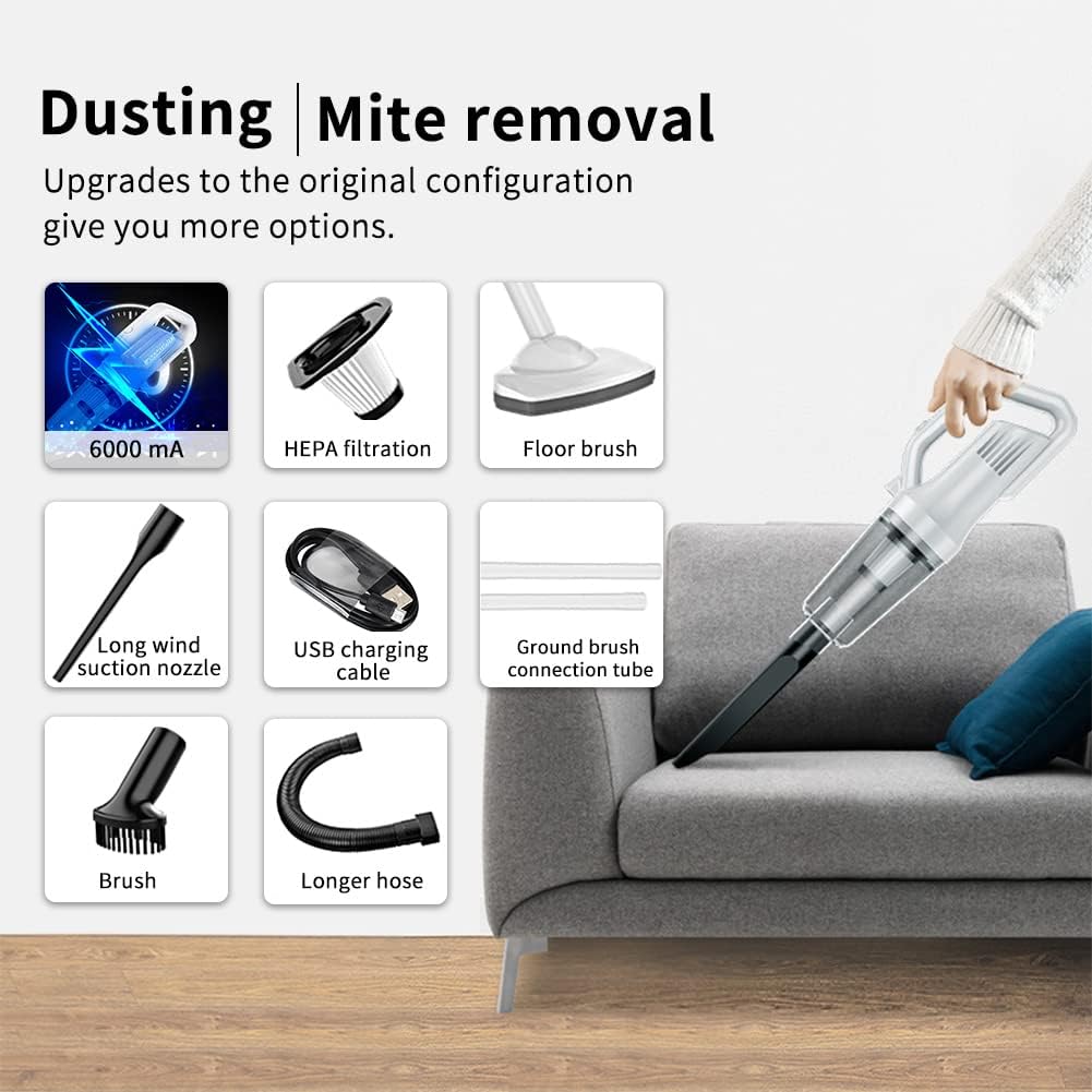 This is a cordless rechargeable vacuum cleaner equipped with a floor brush and a long connection tube that quickly converts into a handheld vacuum cleaner to clean from floor to ceiling. When you're done cleaning, it can easily stand up against the wall or be disassembled for easy storage and organization. Package size: 5.315.33.9 inch Batteries : 3pcsx2000mAh (included in the product) Accessories: 1cordless vacuum cleaner, 2extension tubes, 1extension hose, 1floor brush, 1brush, 1usb charging cable, 1instruction manual