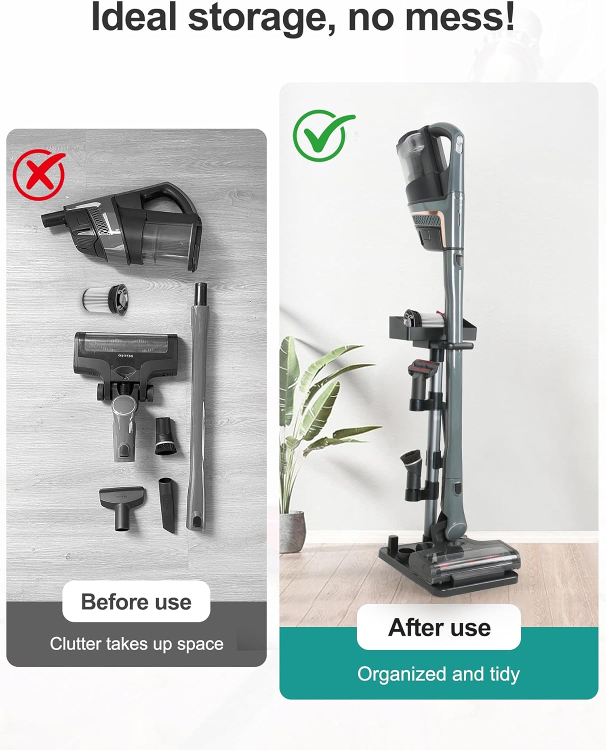 • ORGANIZATION SOLUTION: Keeps vacuum and attachments neatly arranged with dedicated spots for cleaning heads, brushes, and other accessories