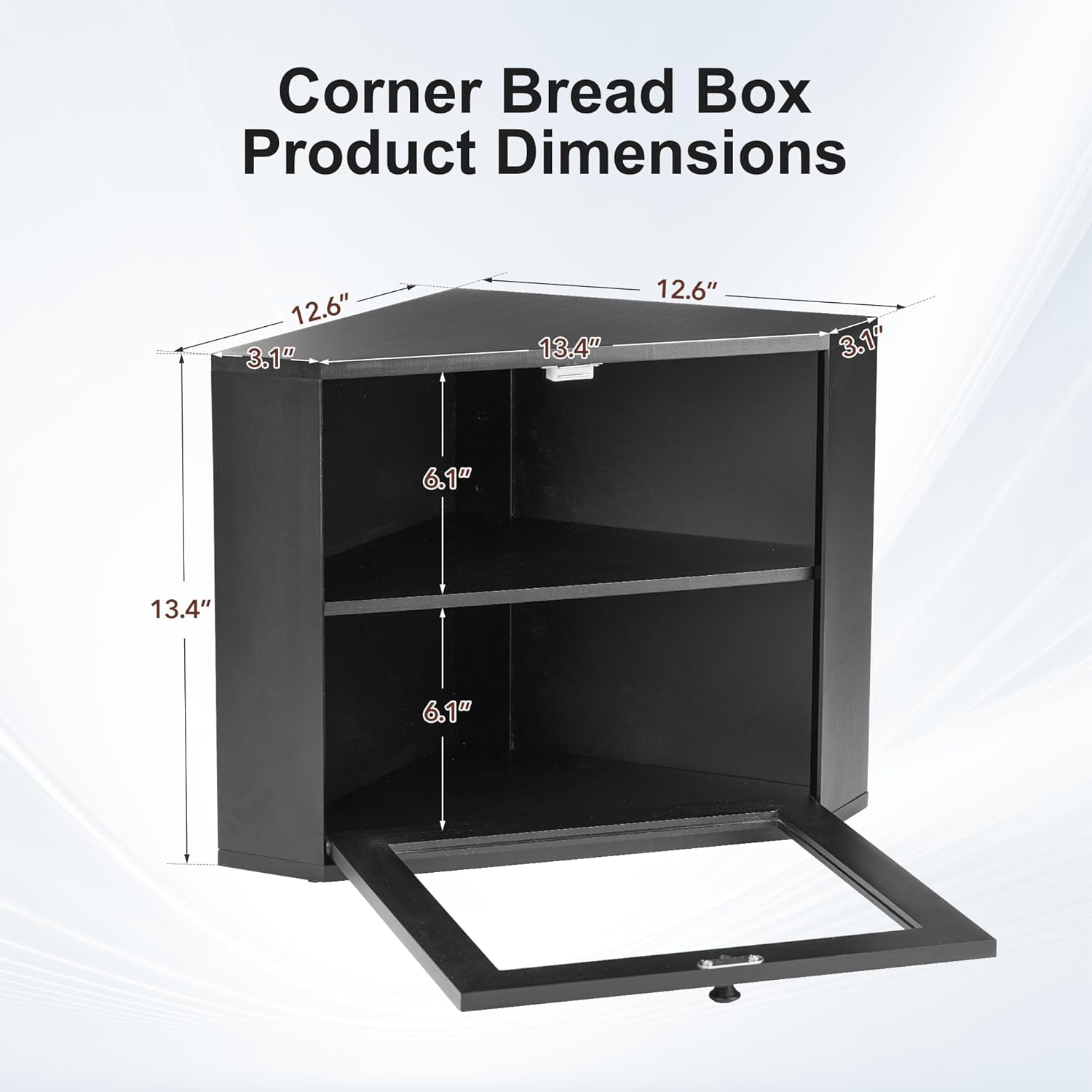 Corner Bread Box for Kitchen Countertop, Large Black Bamboo Double Layer Farmhouse Storage Bin with Window for Homemade Bread, Snacks, Cookies